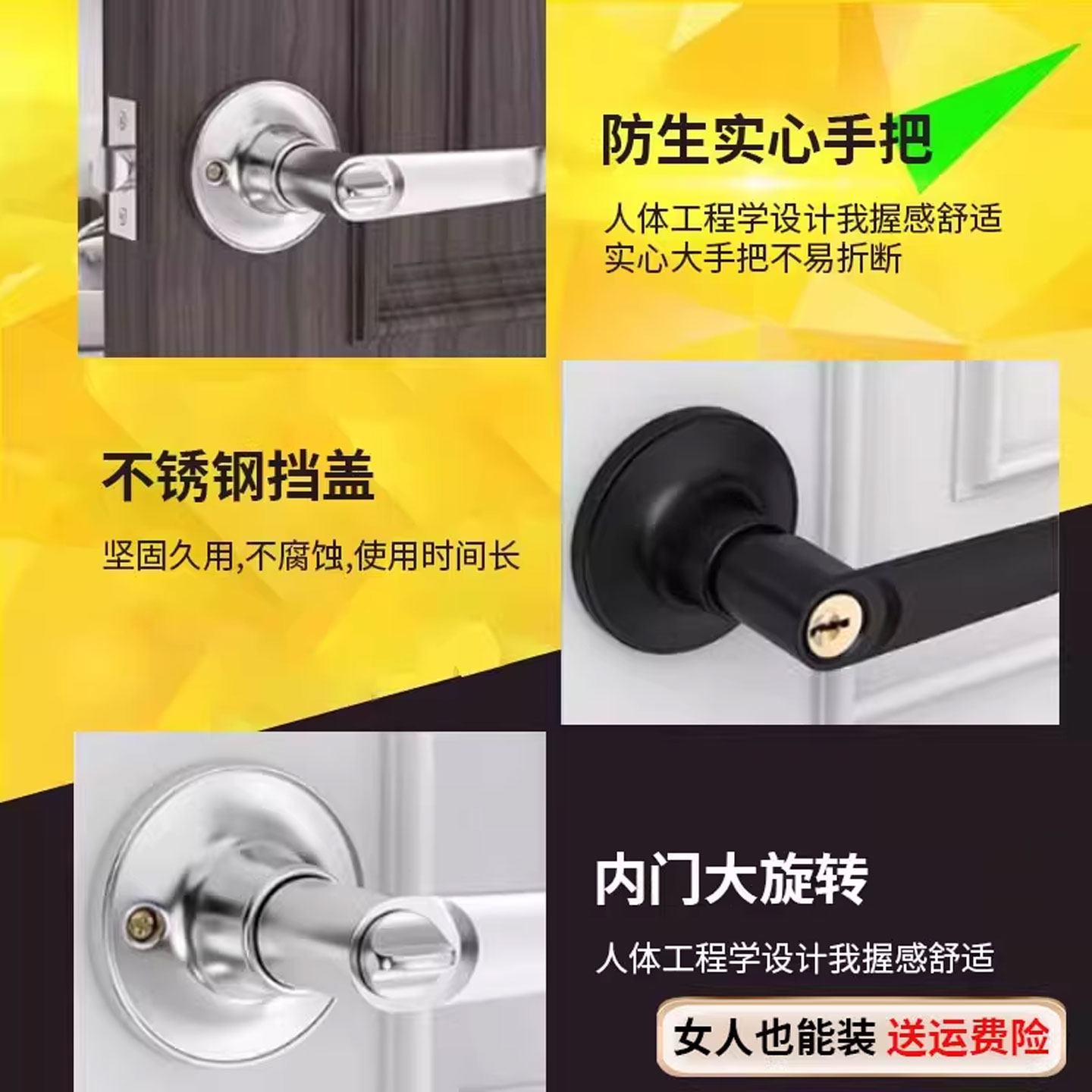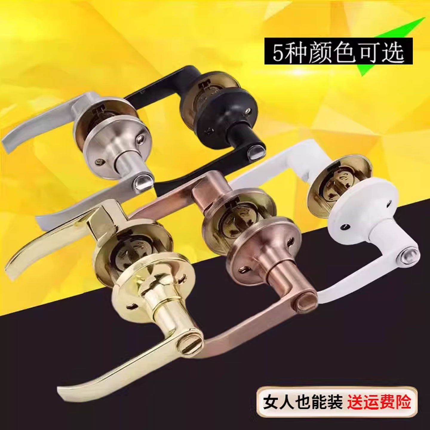 📚 三杆式卫生间门锁铝合金通用执手锁塑钢门彩钢门把手锁厕所三杆锁