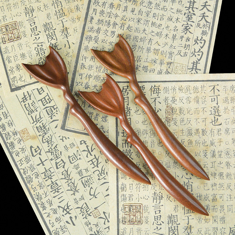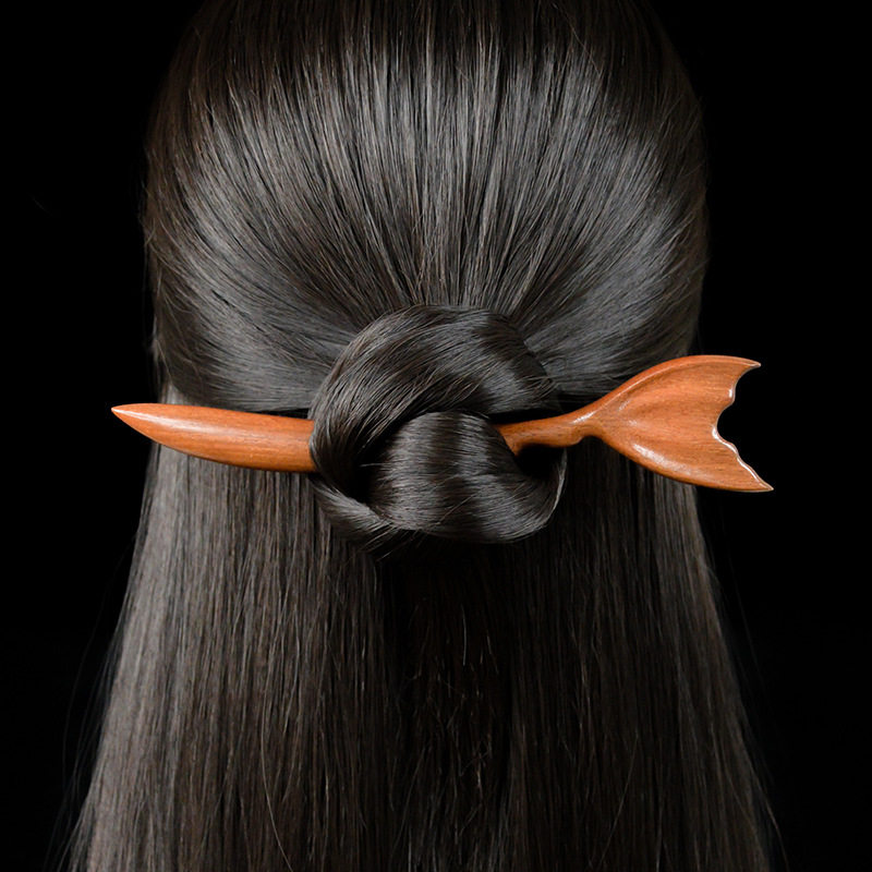 📚 手工金丝檀木飞鱼发簪头饰汉服新中式优雅超仙女盘发长短鱼尾簪子