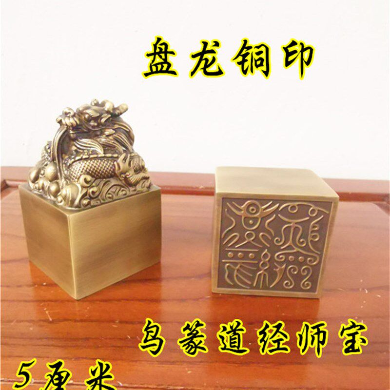 📚 道用品铜盘龙印仿古铜印道经师宝印单面印黄铜鸟篆道经师宝铜印