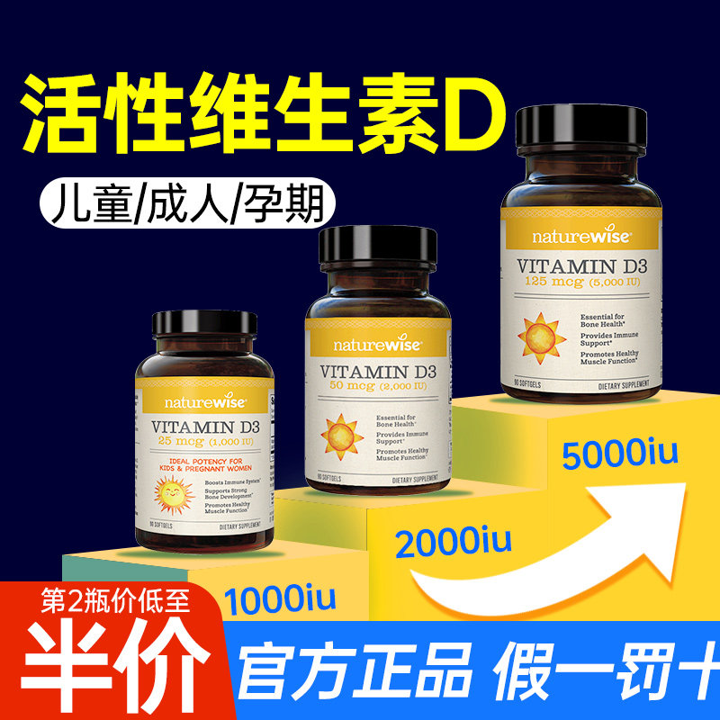 📚 Naturewise阳光瓶维生素d3活性羟基维d5000iu女性备孕妇成人vd3