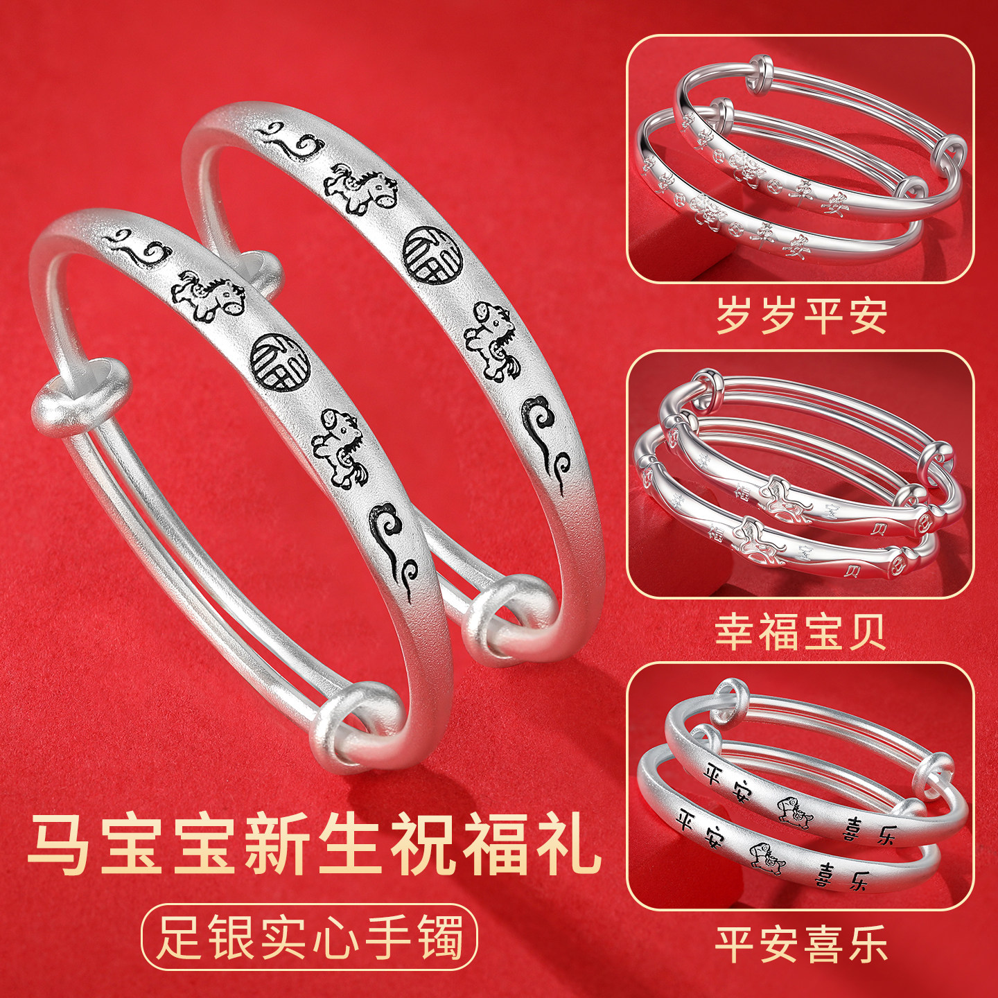 📚 马宝宝出生见面礼银手镯宝宝婴儿2026新款纯银9999银镯子满月礼物