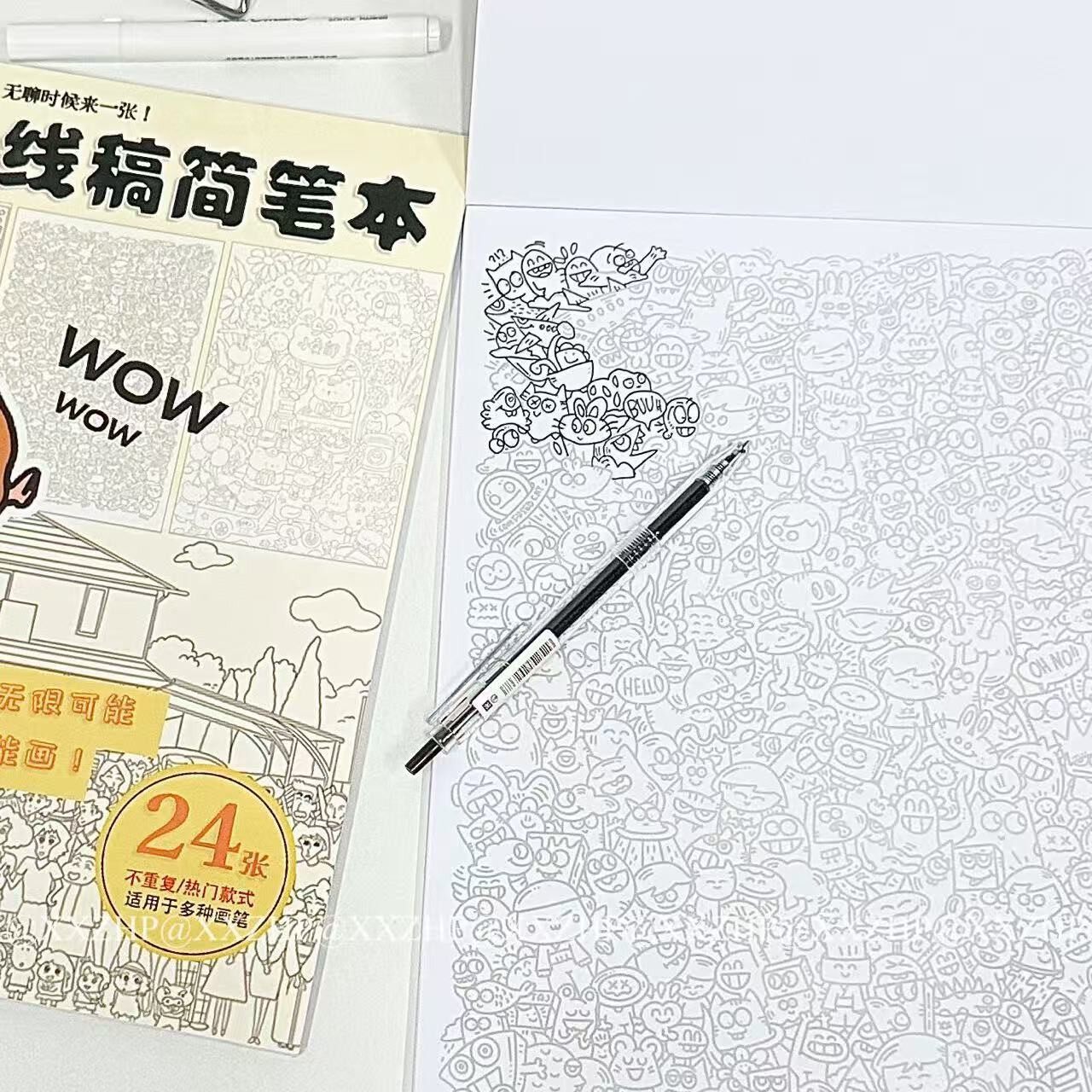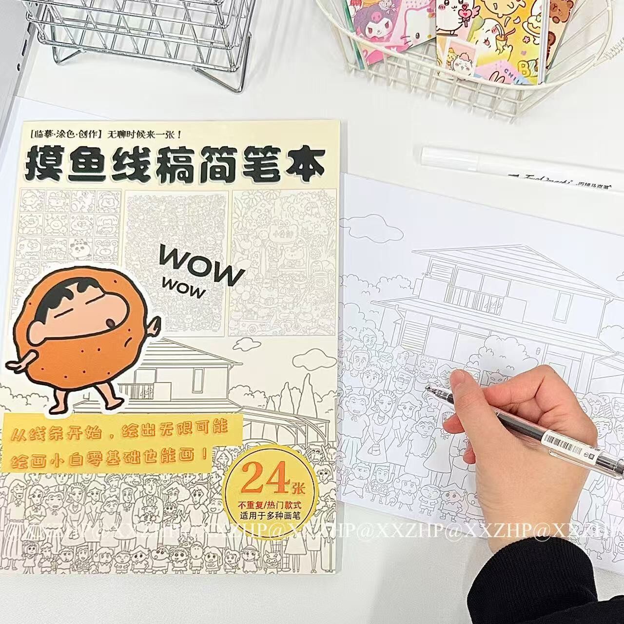 📚 上课上班摸鱼线条画蜡笔小新款上课开小差神器描画本临摹画简笔画控笔练习画画图上班无聊解压练习临摹图纸稿