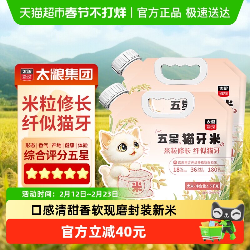 📚 太粮五星猫牙米籼米2.5kg*2袋南方大米长粒米便携手提袋当季新米