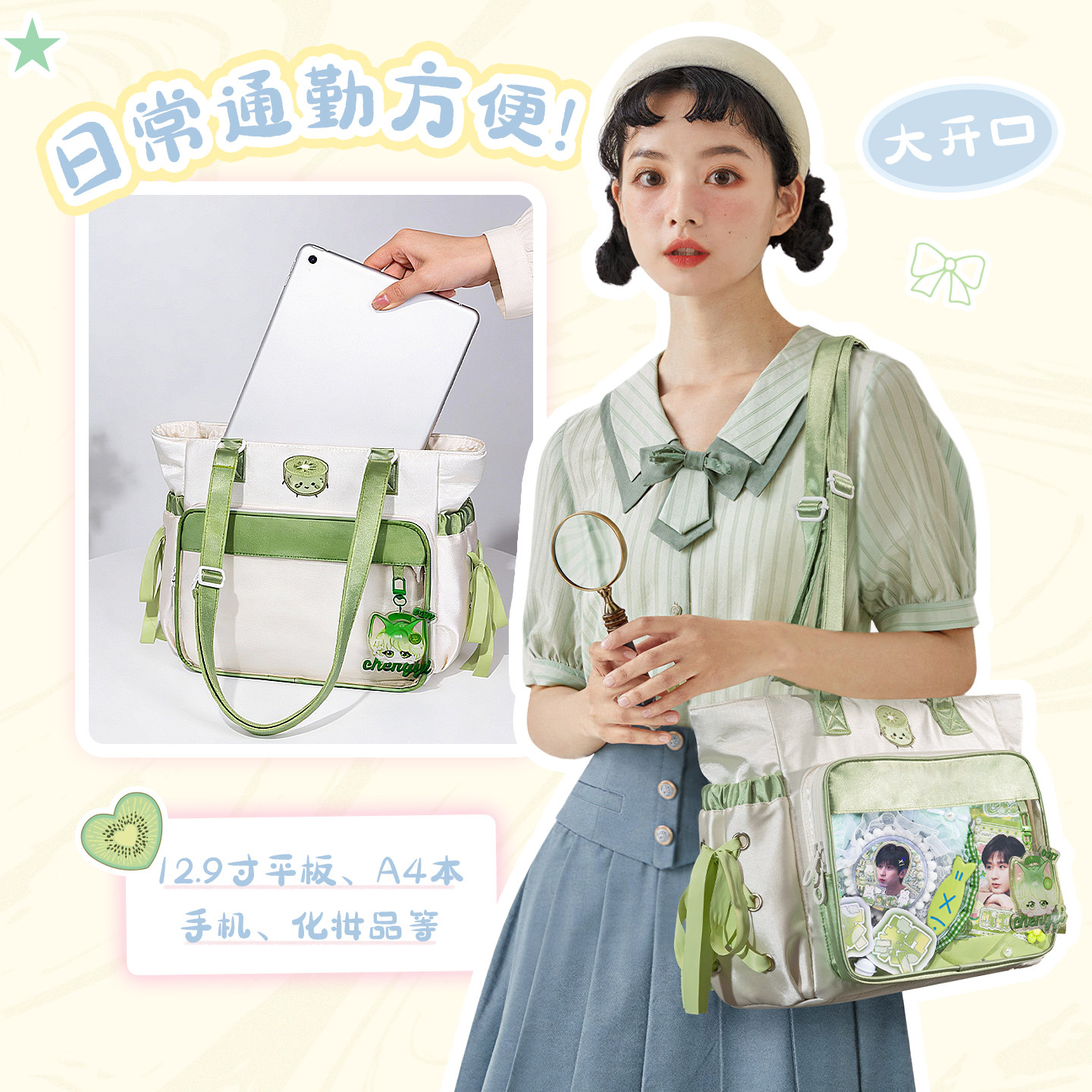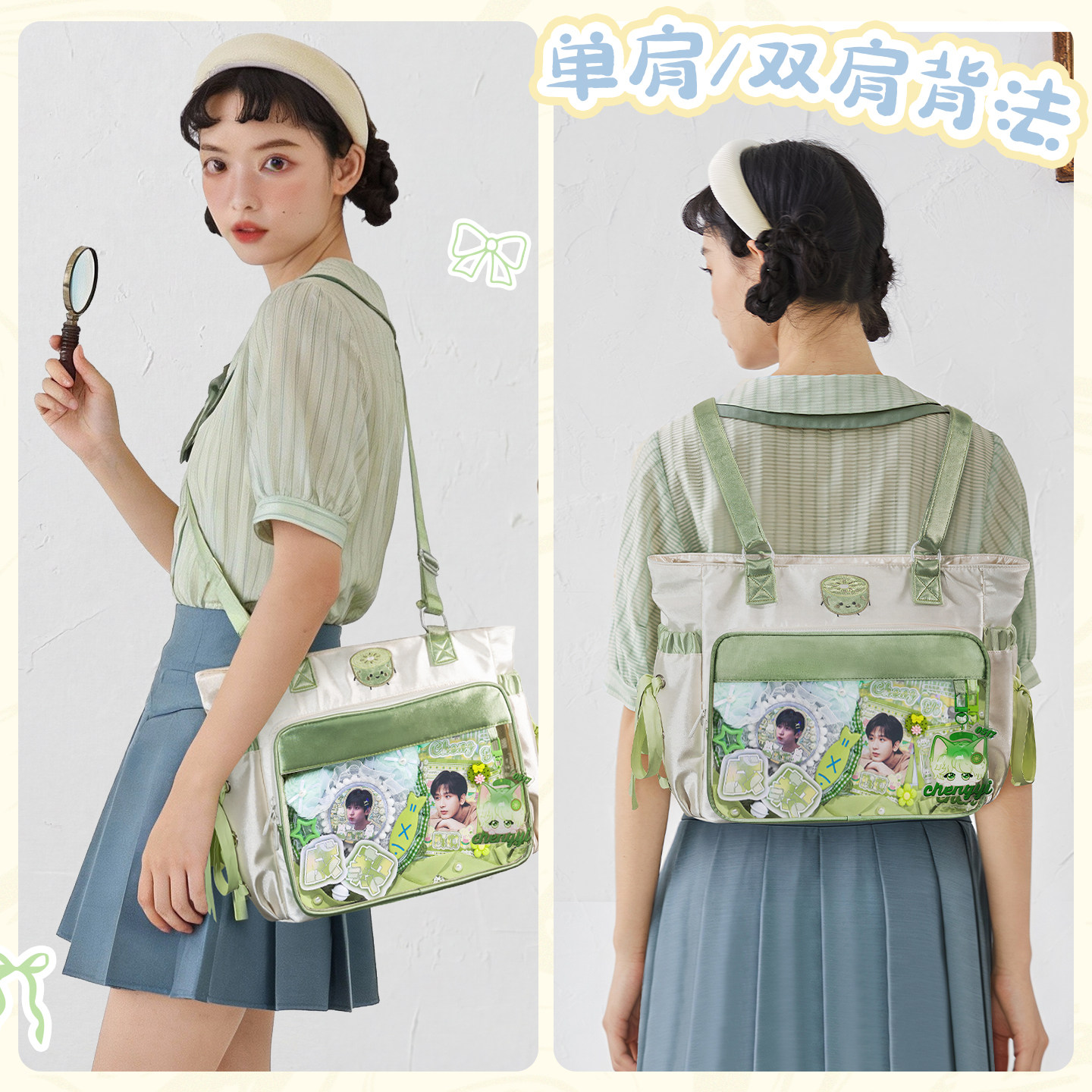 📚 官方原创成毅痛包周边同款礼物大容量斜挎包绿色丝带双肩包包女生