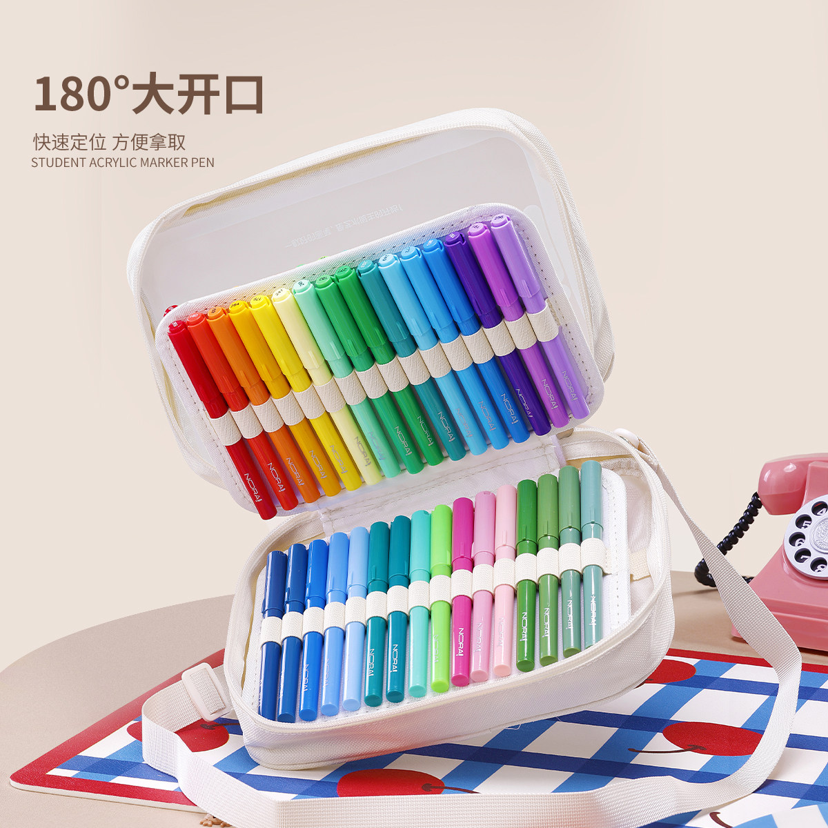 📚 诺雅直液式丙烯马克笔软头小学生美术专用幼儿园儿童画笔无毒可水洗水彩笔48色60色80色丙烯笔高颜值礼盒套装