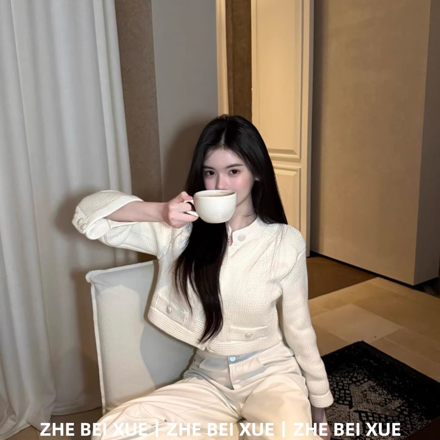 📚 套装女韩系小香风米白色针织开衫阔腿休闲裤子独特漂亮冬装一整套