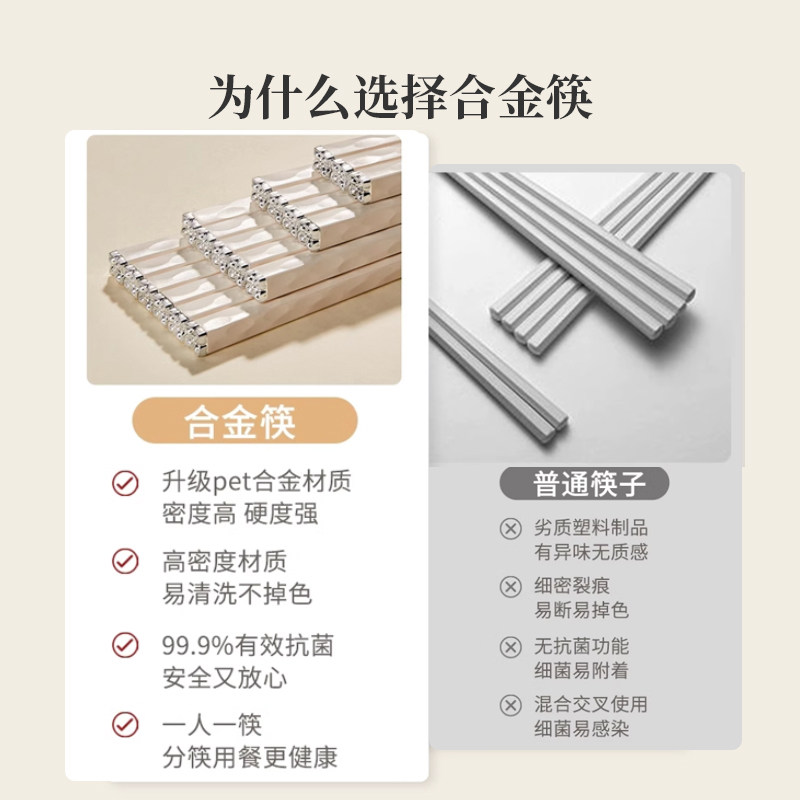 📚 抗菌防霉筷子家用高档新款合金筷特别好看的高端餐具家庭一人一筷