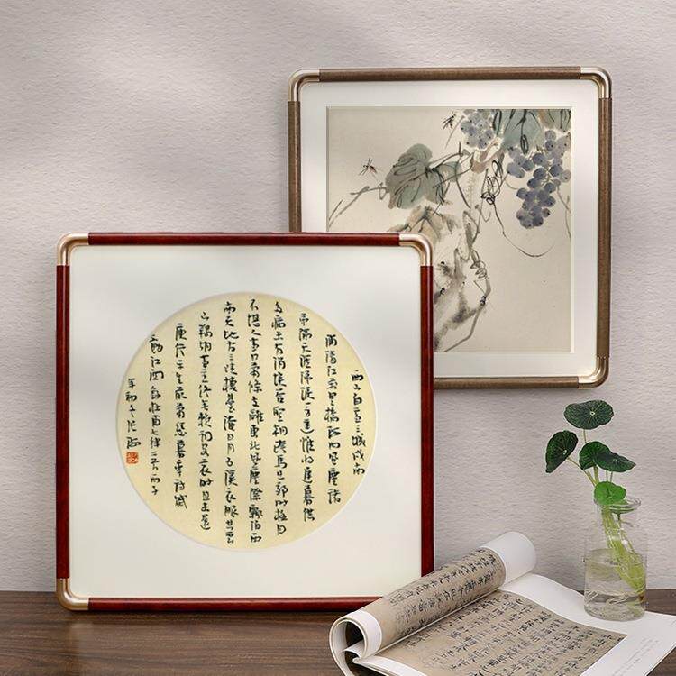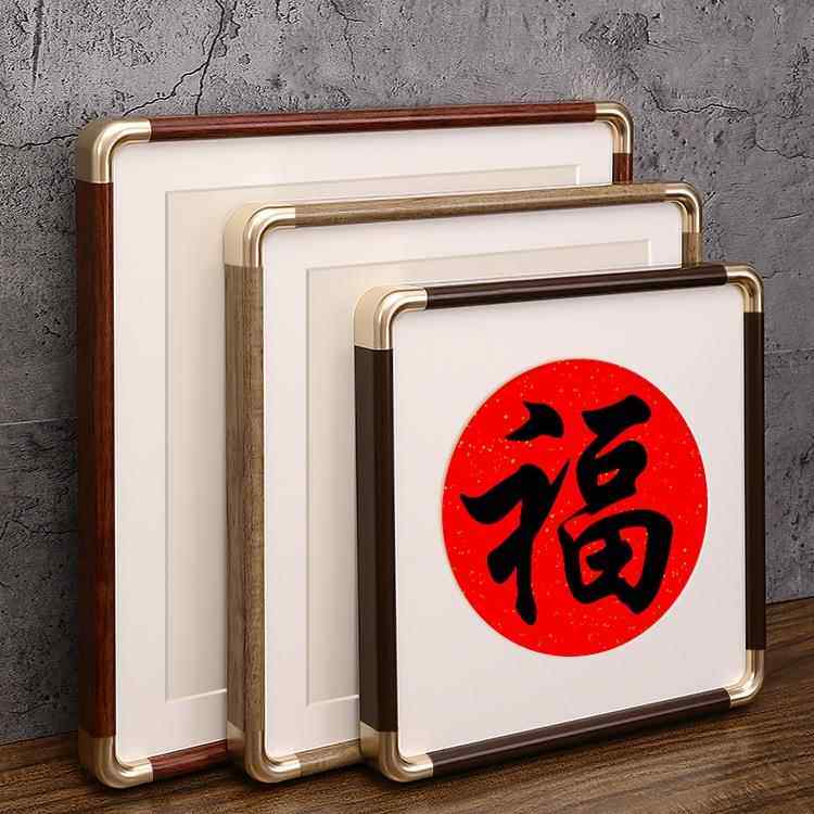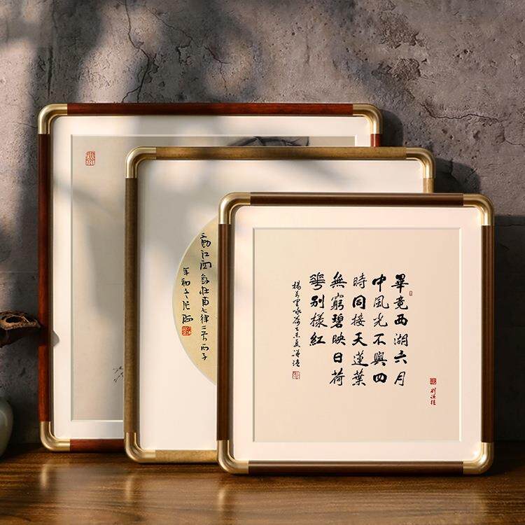 📚 正方形画框空框书法边框字画黑胡桃相框圆角画框50装裱框卡纸定
