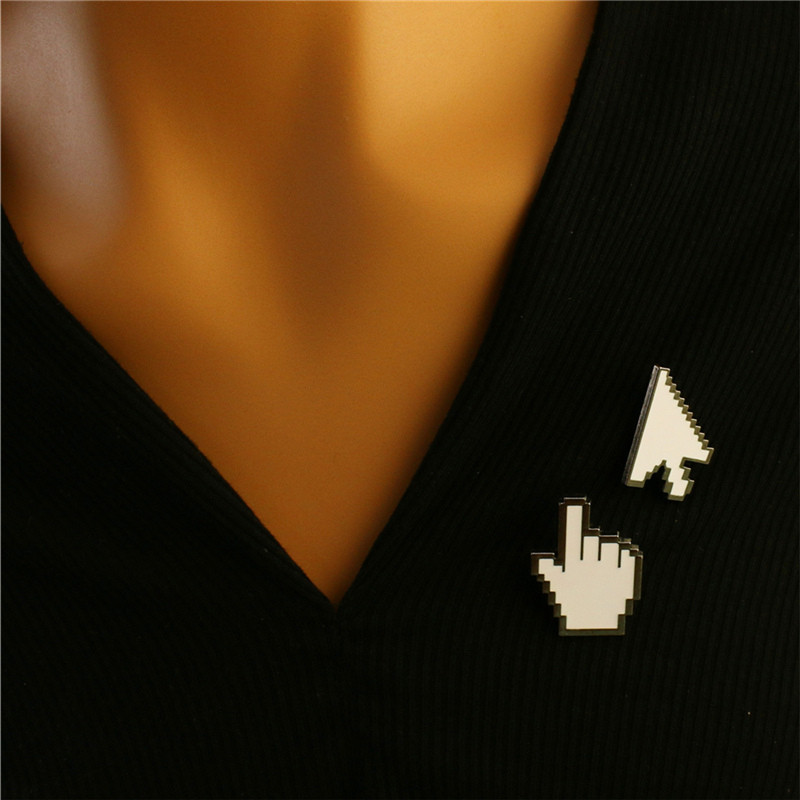 📚 日韩简约风趣味像素手形胸针电脑鼠标光标造型别针创意配饰
