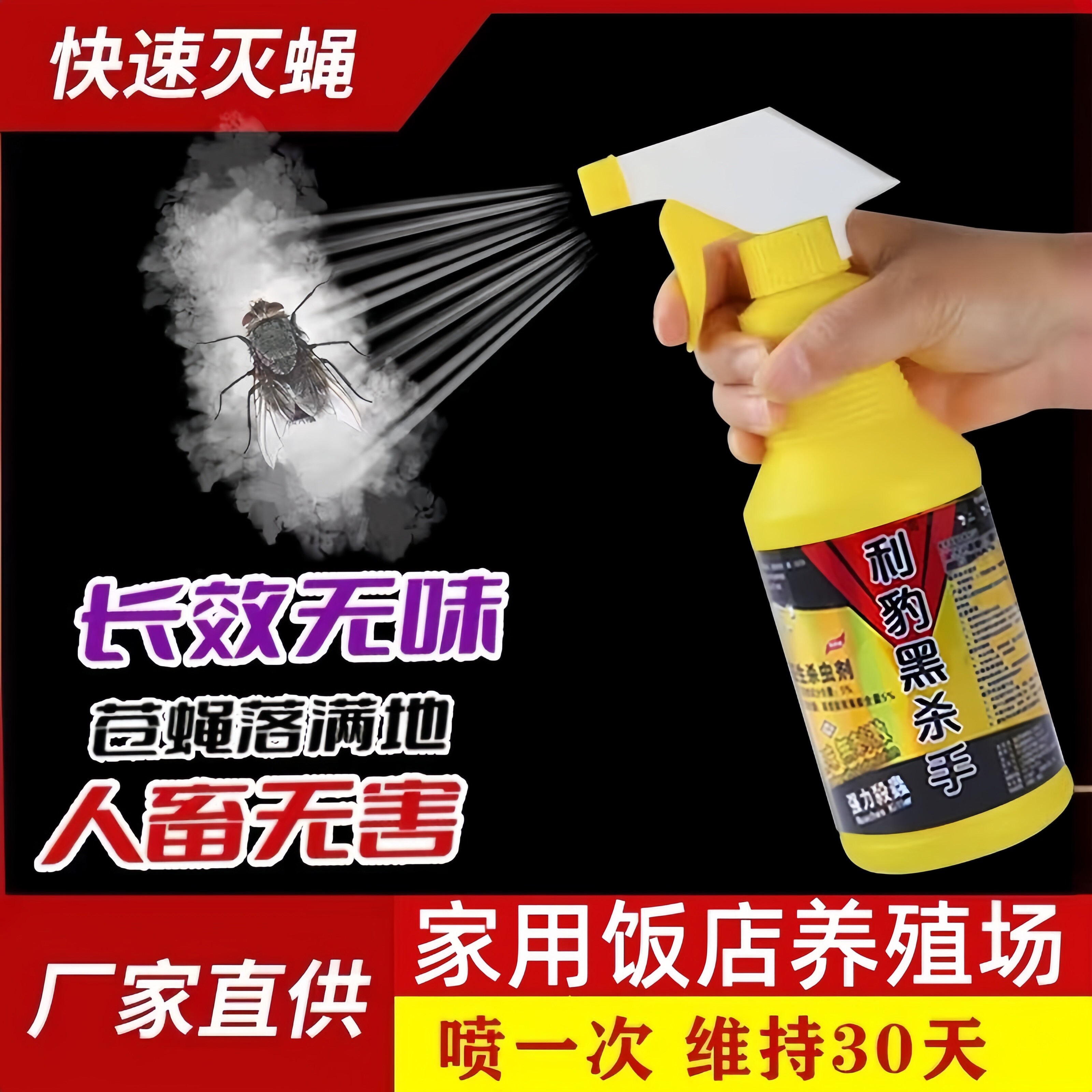 📚 黑杀手苍蝇药无味杀虫水乳剂苍蝇一扫光家用饭店室外养殖场灭蝇王