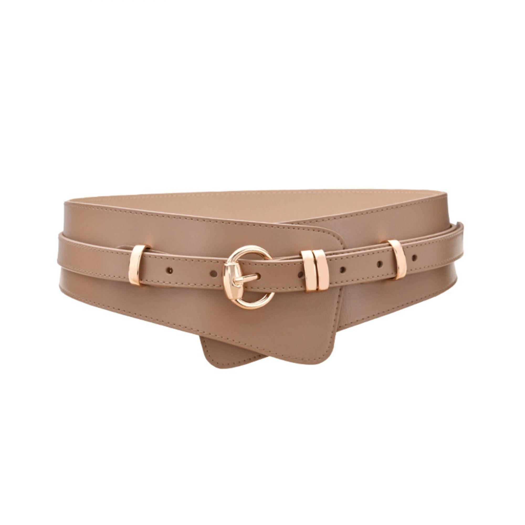 📚 浅卡其色8厘米超宽腰带女羽绒服风衣呢大衣真皮束腰腰封装饰皮带