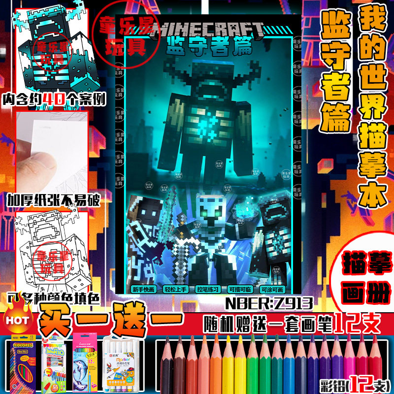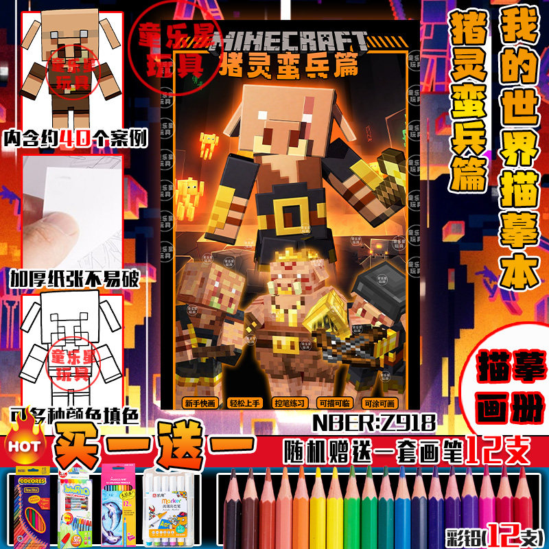 📚 描摹本猪灵蛮兵我的世界坚守者画画本卡通涂鸦填色儿童练习图画本