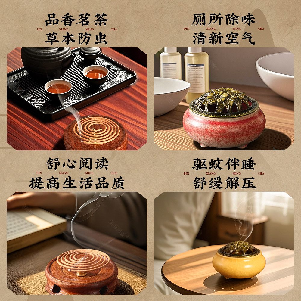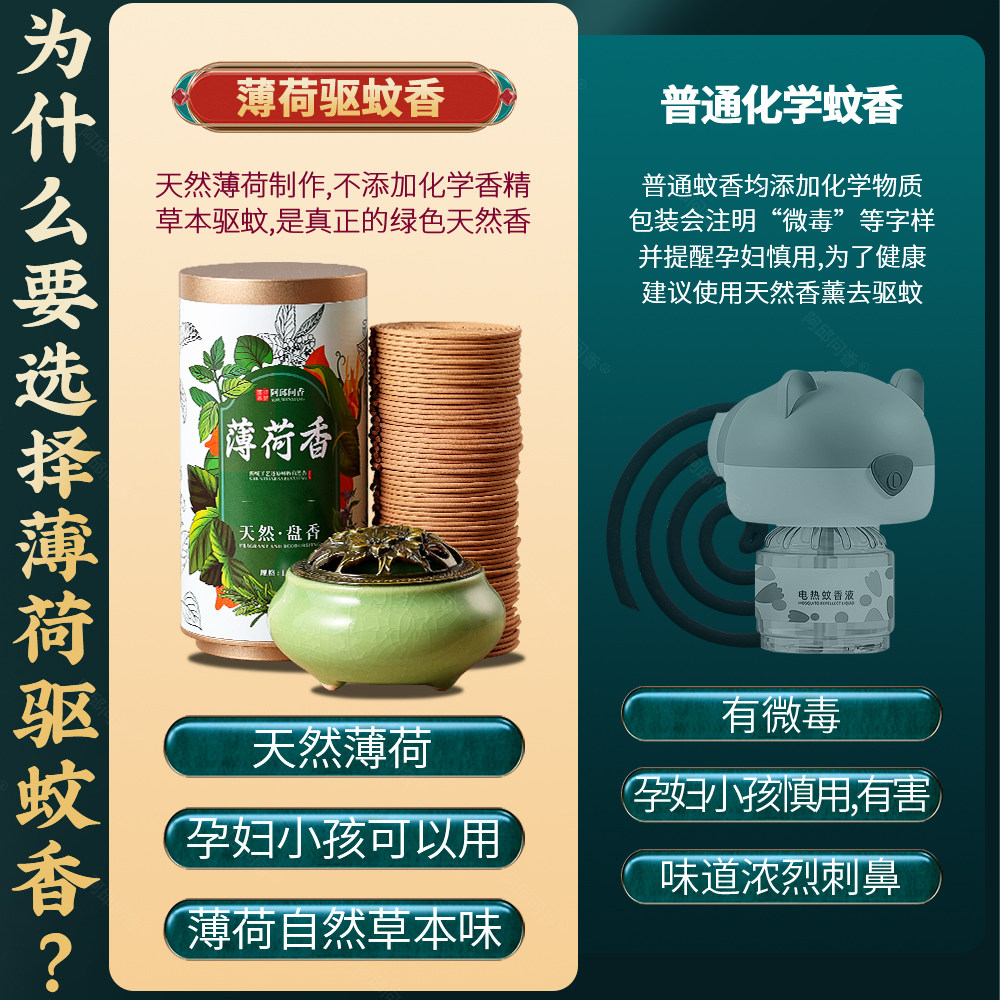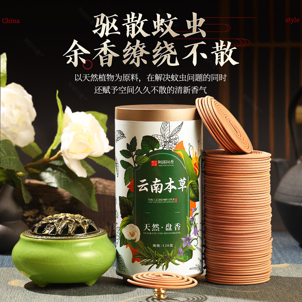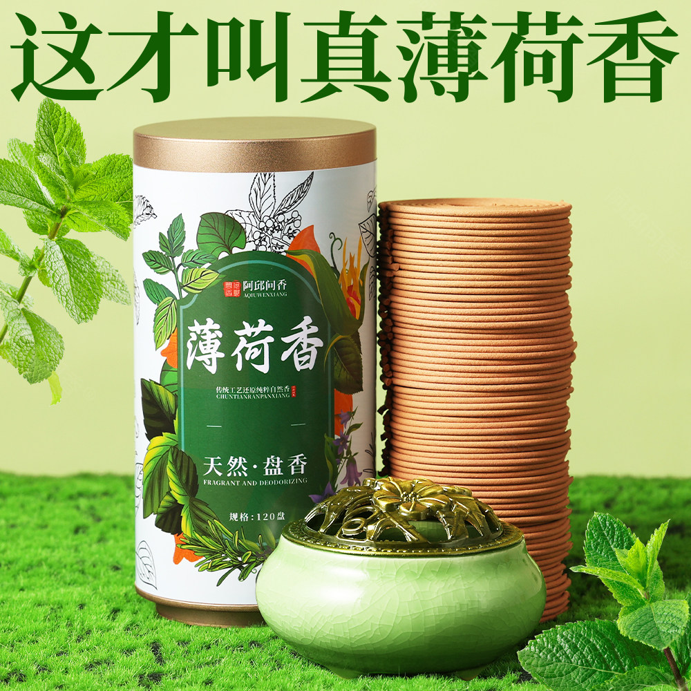 📚 薄荷熏香天然驱蚊盘香家用艾草香持久除臭味净化空气沉香卧房安神