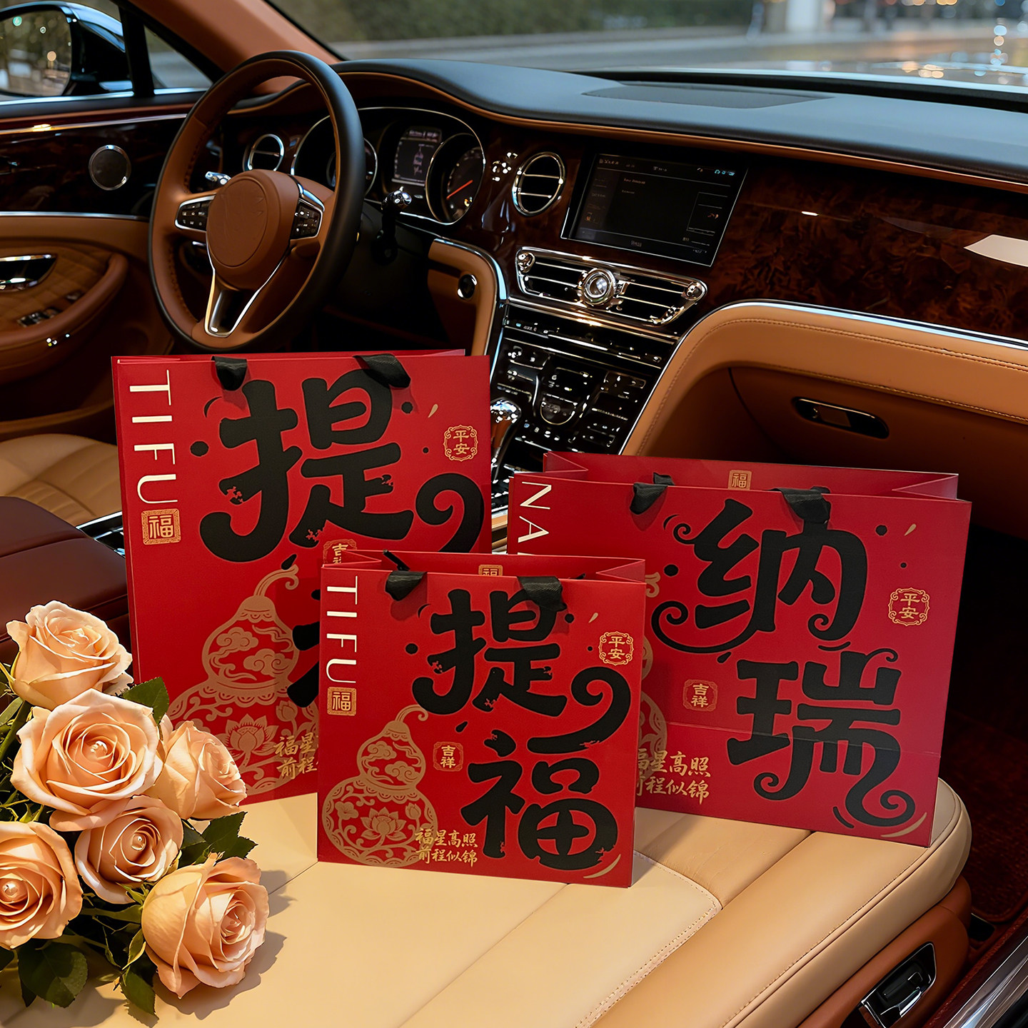 💥心动!中式新年喜庆福袋礼品袋,复古红色伴手礼,让你爱不释手💓