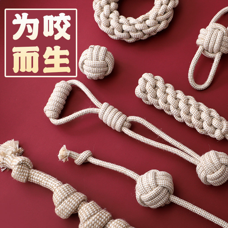📚 宠物狗狗互动玩具棉麻结绳柯基啃咬磨牙洁齿比熊罗威纳耐咬棉绳球