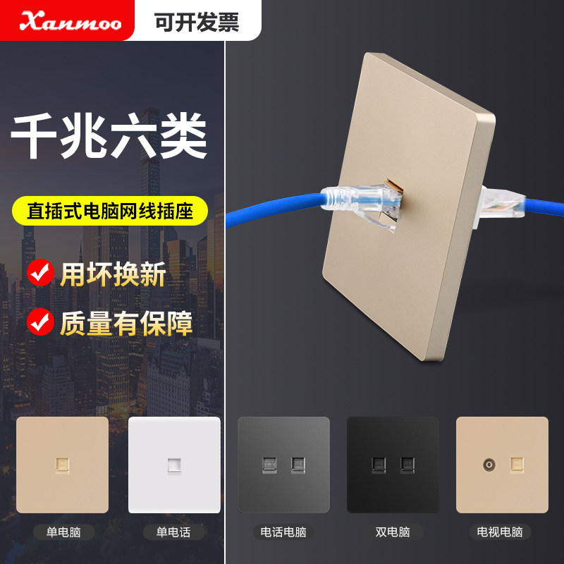 📚 直插免接线86型暗装超六类网络电脑插座 宽带网线网络双网口面板