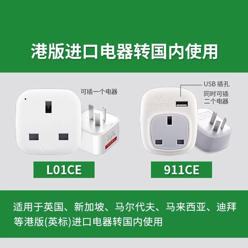📚 公牛英标转换插头中国香港新加坡英国韩国日本欧洲国际转化插头器