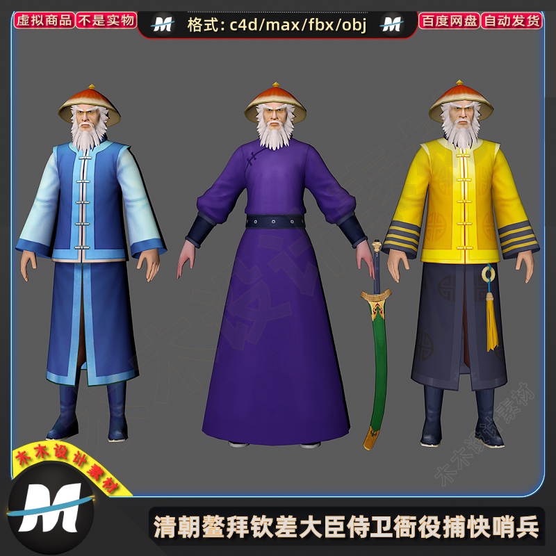 📚 C4Dmax FBX卡通鳌拜钦差大臣侍卫衙役捕快哨兵角色人物3D模型素材