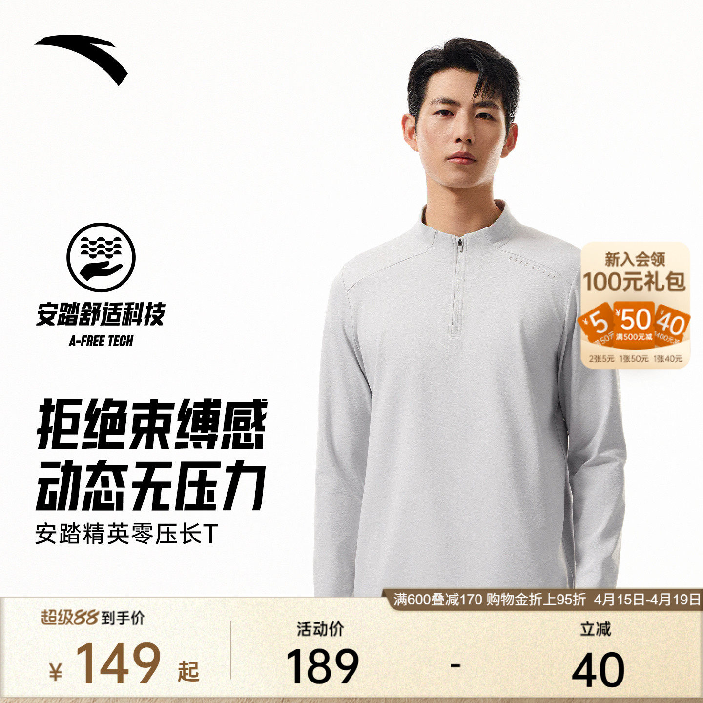 📚 安踏零压T丨半拉链长袖t恤男春季新款商务通勤打底针织衫运动上衣