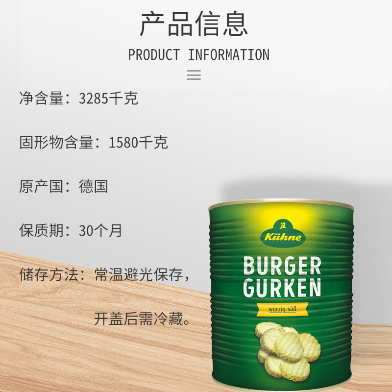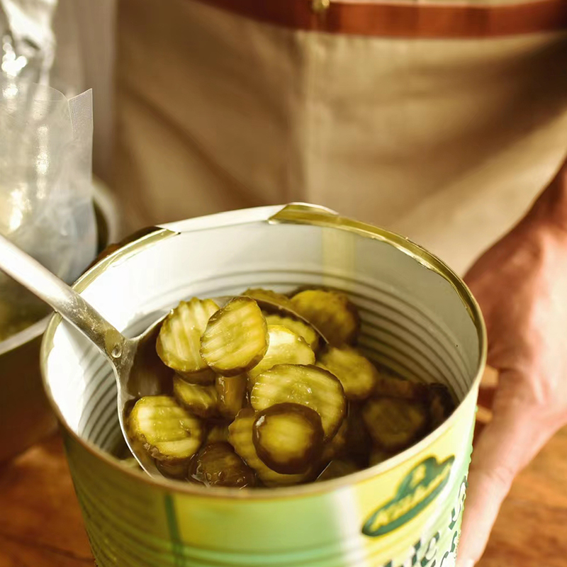 📚 冠利俄式酸黄瓜片商用3.285kg 波浪形汉堡三明治配菜腌小青瓜切片