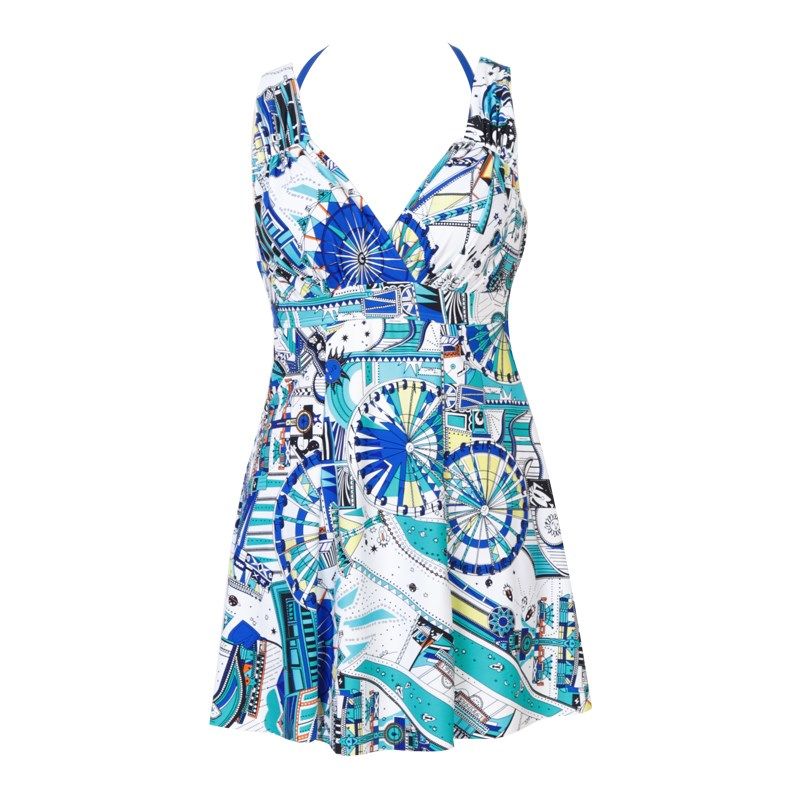 📚 女泳衣遮肚显瘦小胸聚拢连体式泡温泉带钢托带胸垫保守裙式游泳衣
