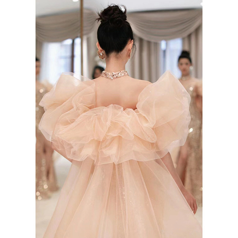 📚 法式香槟金鱼尾开叉高端亮片晚礼服年会主持人订婚敬酒服结婚婚纱