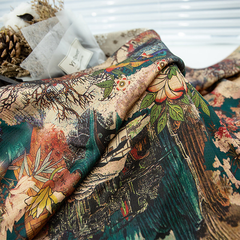📚 印花仿真丝绸布料春夏复古旗袍连衣裙牡丹数码重磅弹力香云纱面料
