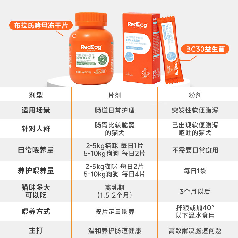 📚 红狗BC30益生菌粉猫咪狗狗专用肠胃健康九大活菌宠物营养补充剂