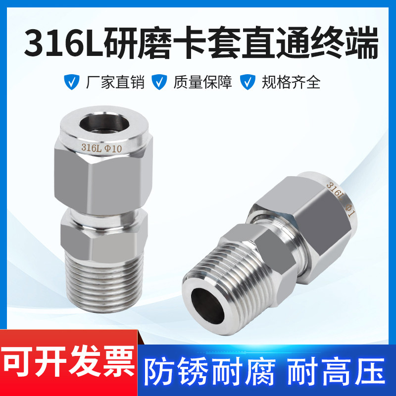📚 316L不锈钢研磨卡套直通终端双卡套接头仪表铜管UNF美标螺纹英制8