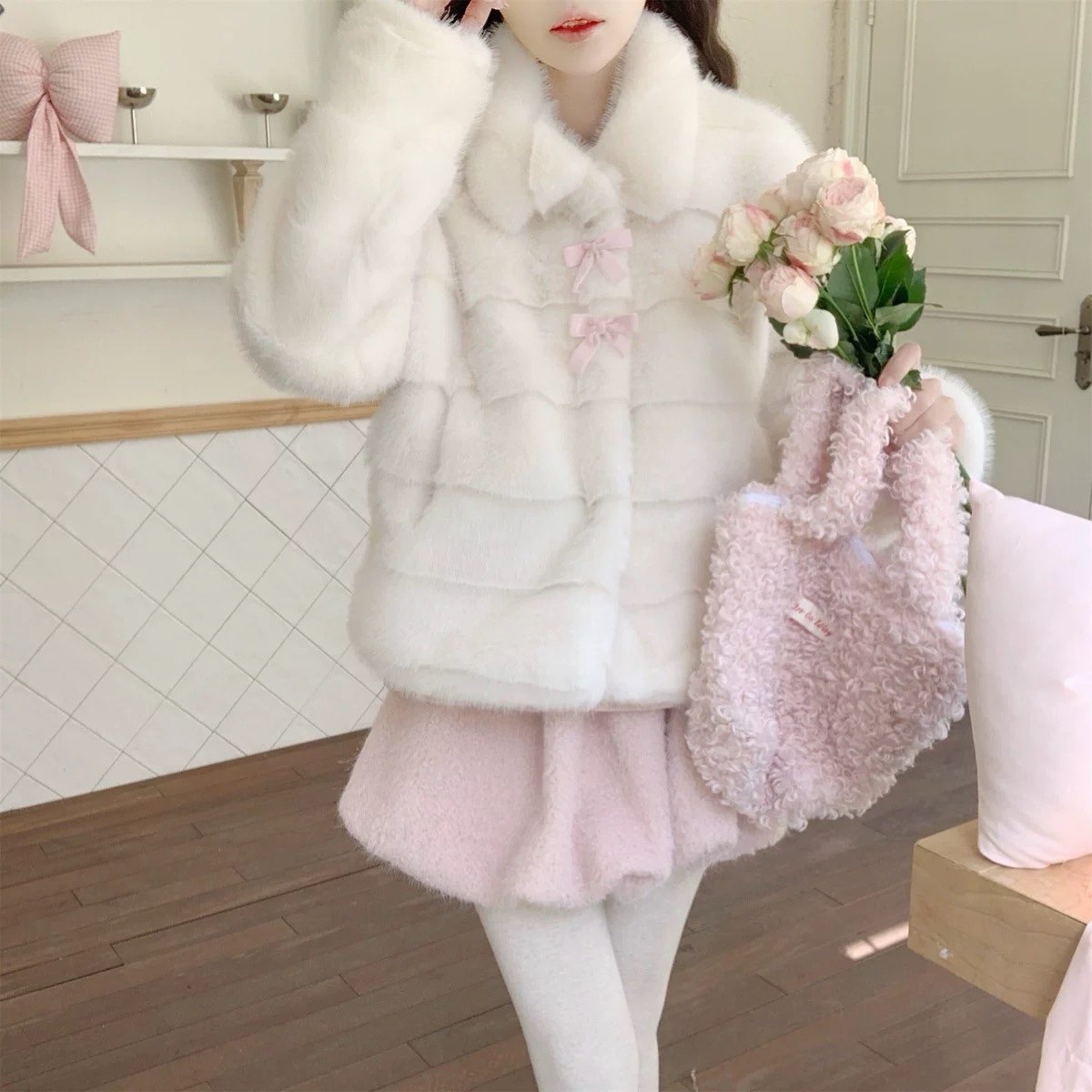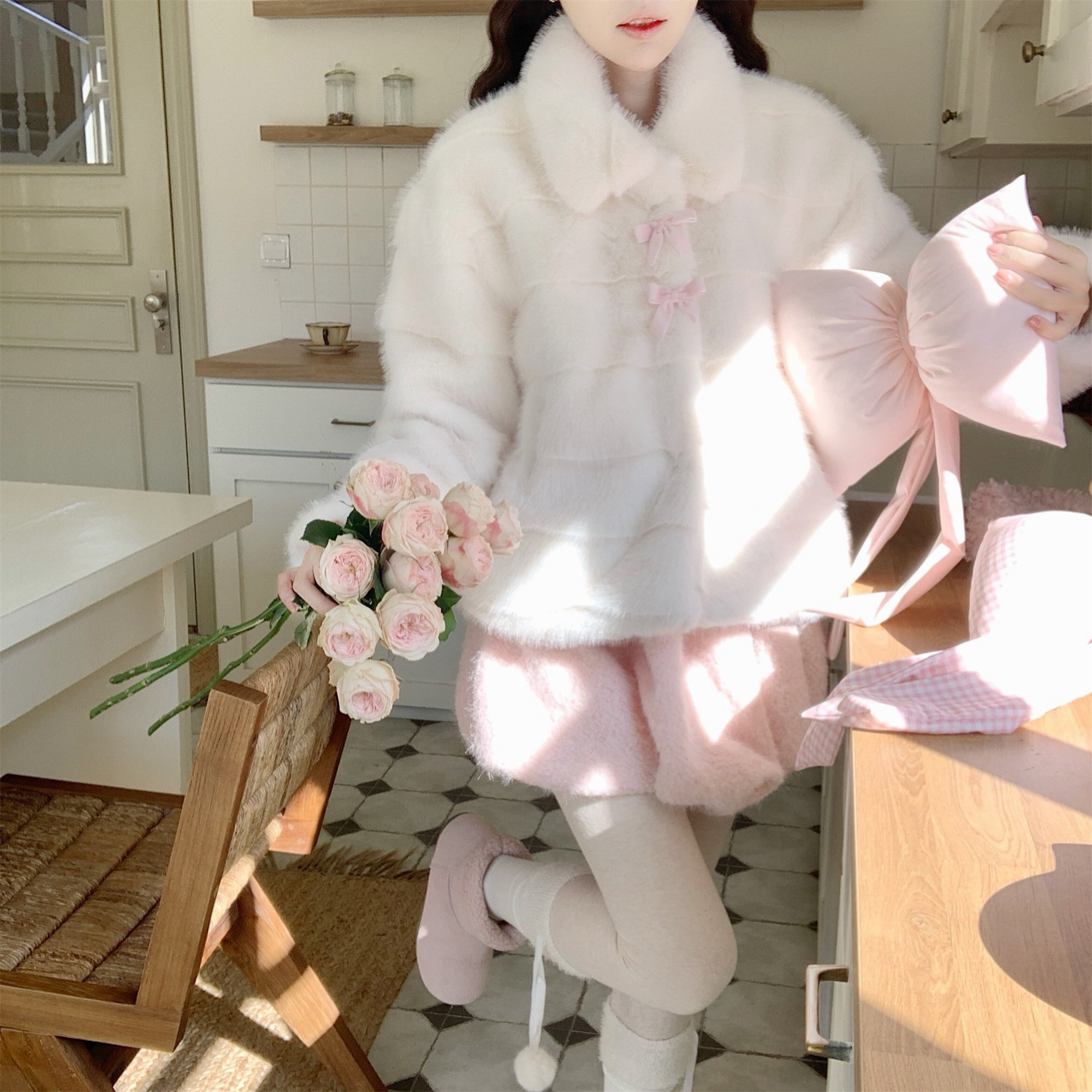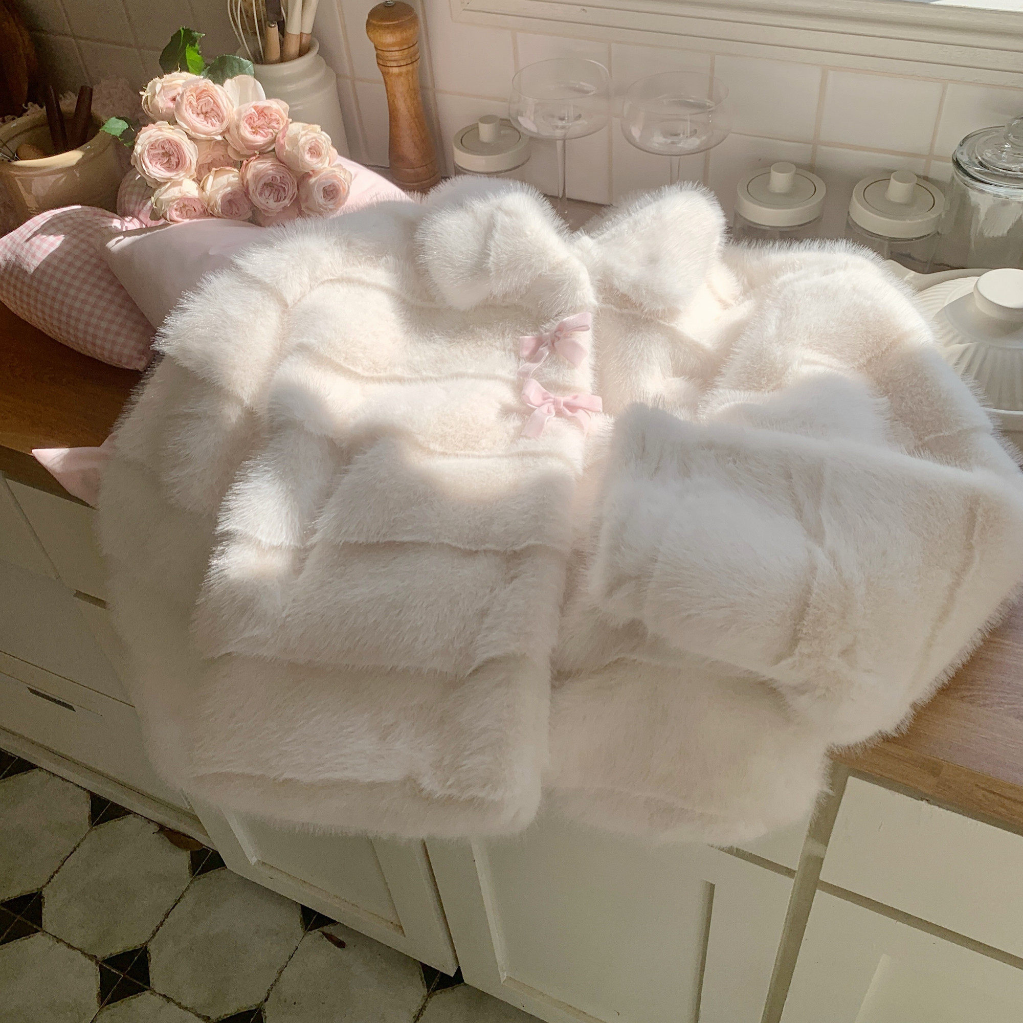 📚 【Dear YN】年度重磅 甜系蝴蝶结水貂坑条环保皮草加厚毛毛外套女