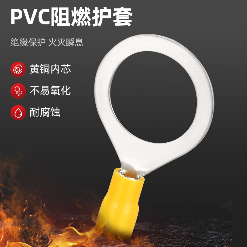 📚 RV大孔径圆形预绝缘冷压接线端子法兰跨接接地铜鼻子18/20/22/24