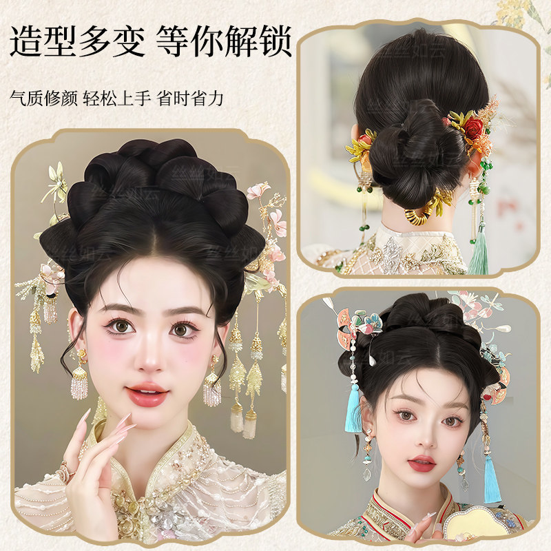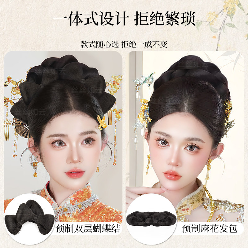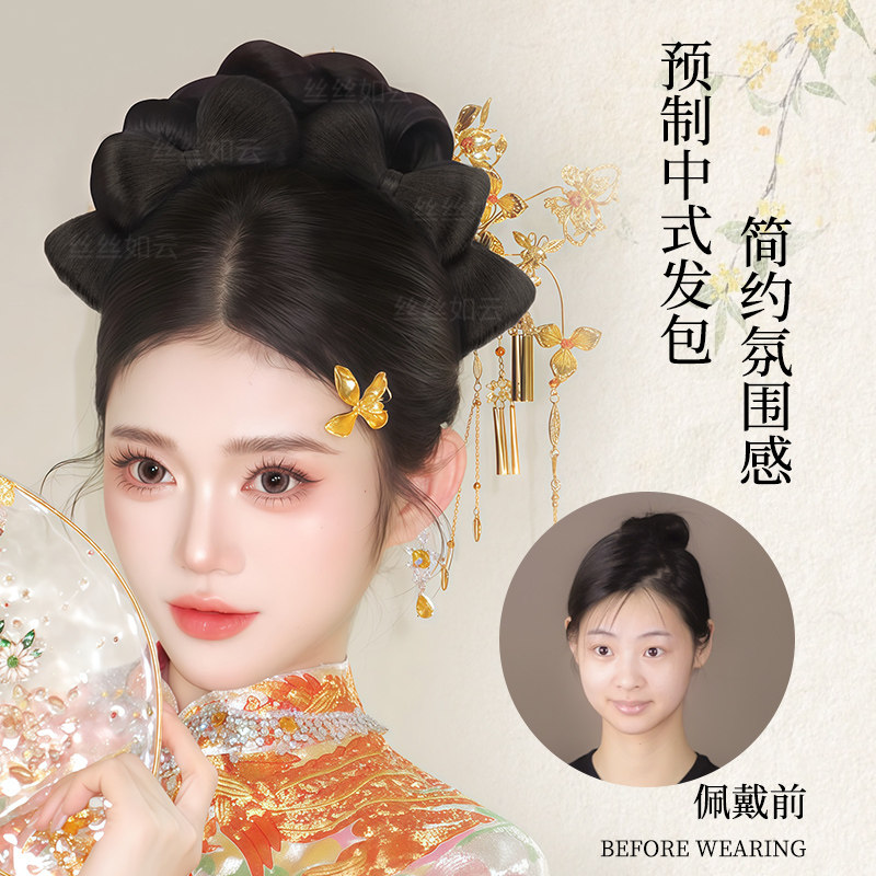 📚 秀禾盘发神器女新娘造型新中式头饰预制成品假发化妆师专用假发包