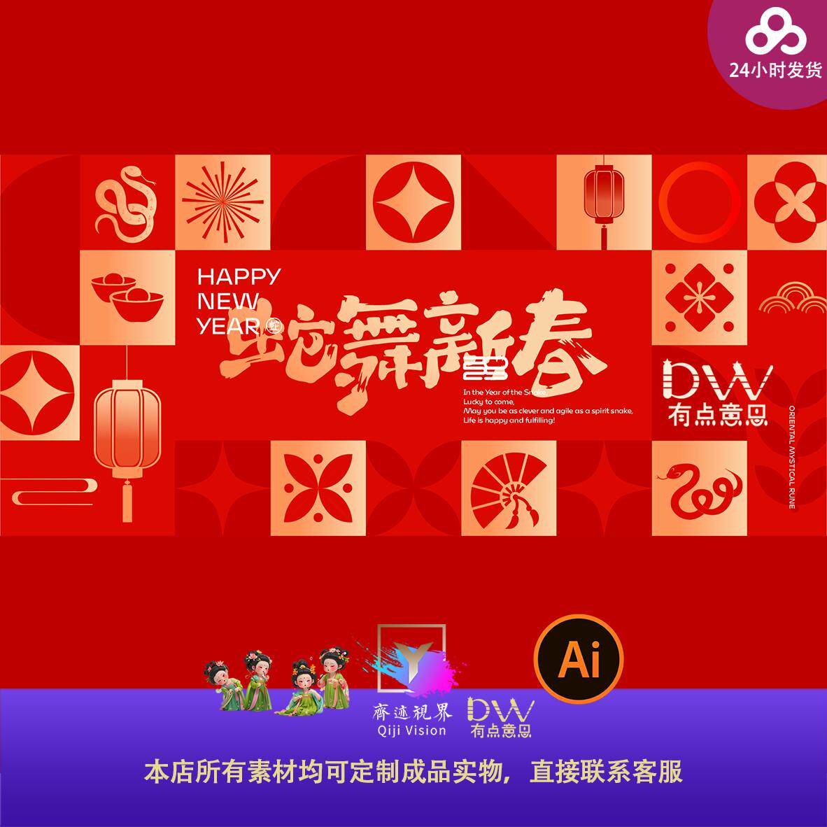 📚 2025蛇年美陈新年氛围布置企业年会背景板春节dp点新春合影区素材