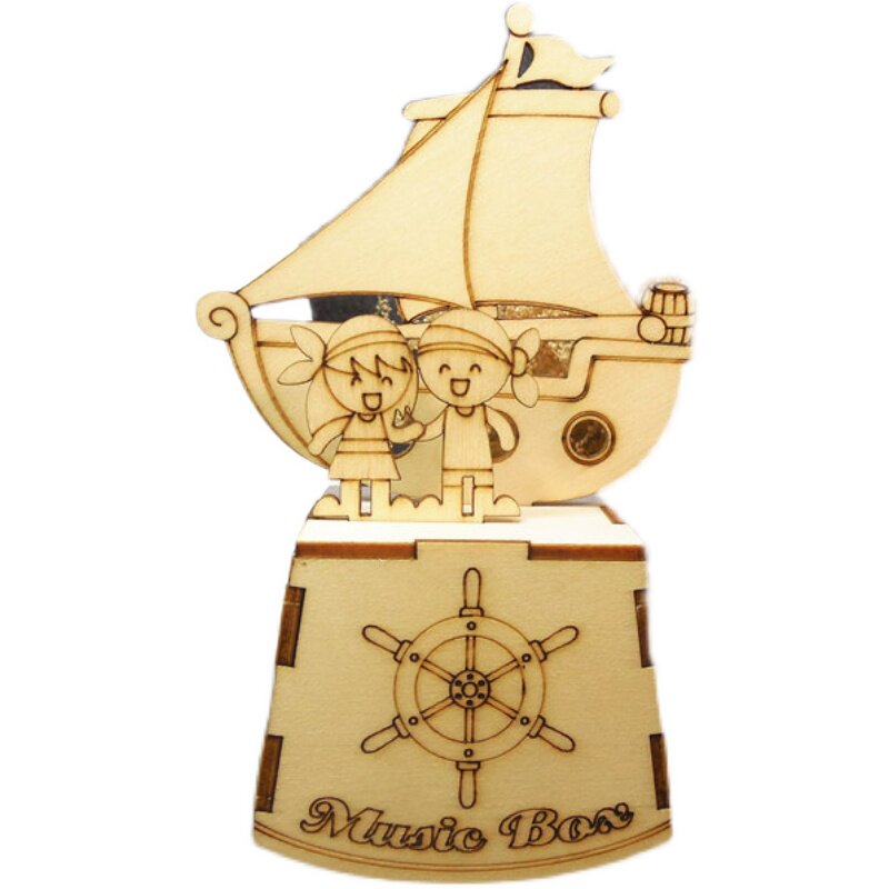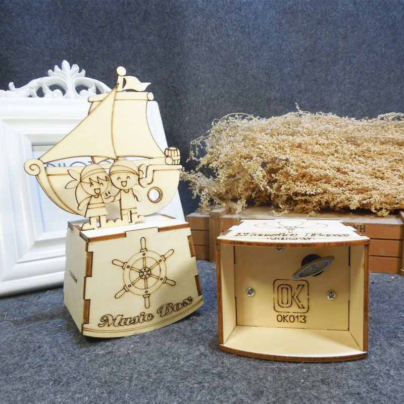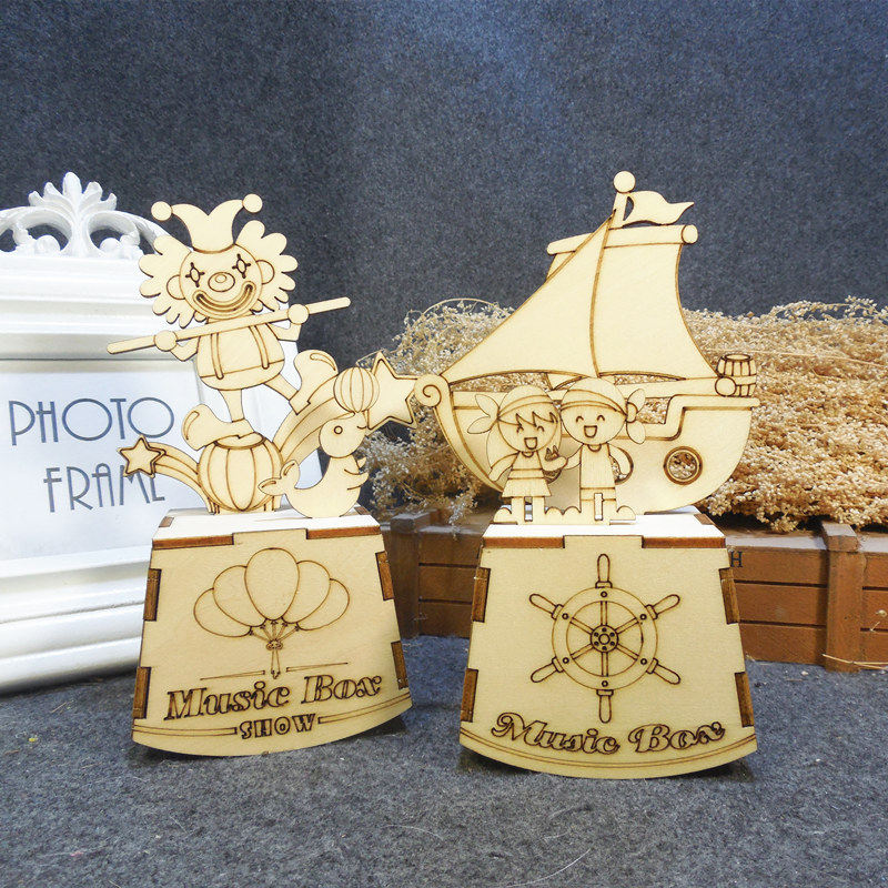 📚 木质上链发条式音乐盒送男孩女孩六一节日礼物卡通八音盒生日礼品