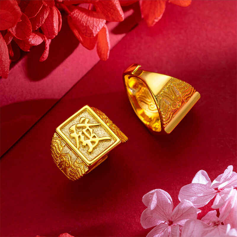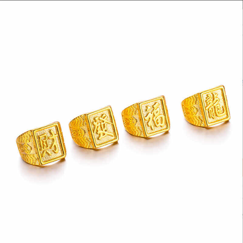 📚 越南沙金男士戒指男款个性潮人开口戒子仿真黄金色男生首饰品