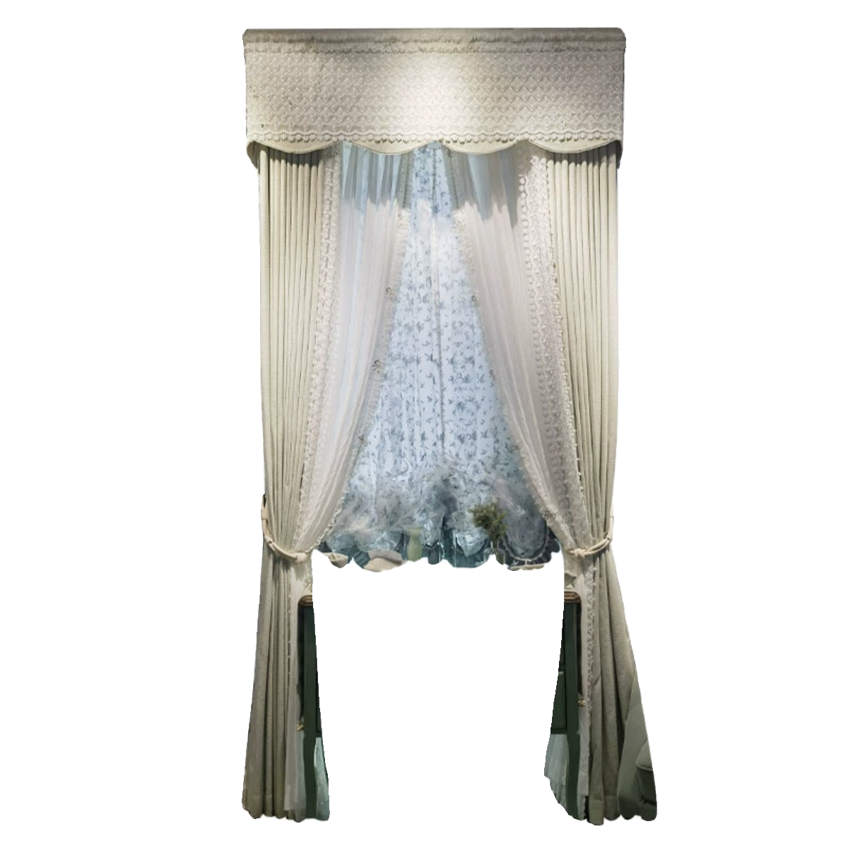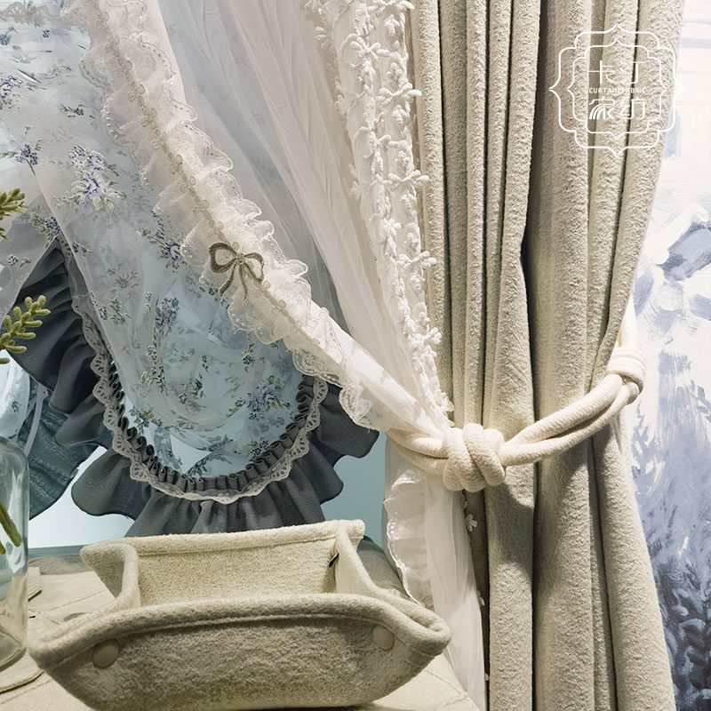 📚 卡汀法式轻奢雪尼尔提花欧式花纹浅绿色加厚卧室窗帘落地飘窗