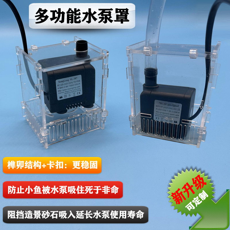 📚 水泵防吸鱼罩鱼缸过滤网防吸小鱼保护罩亚克力潜水泵挡沙板过滤盒