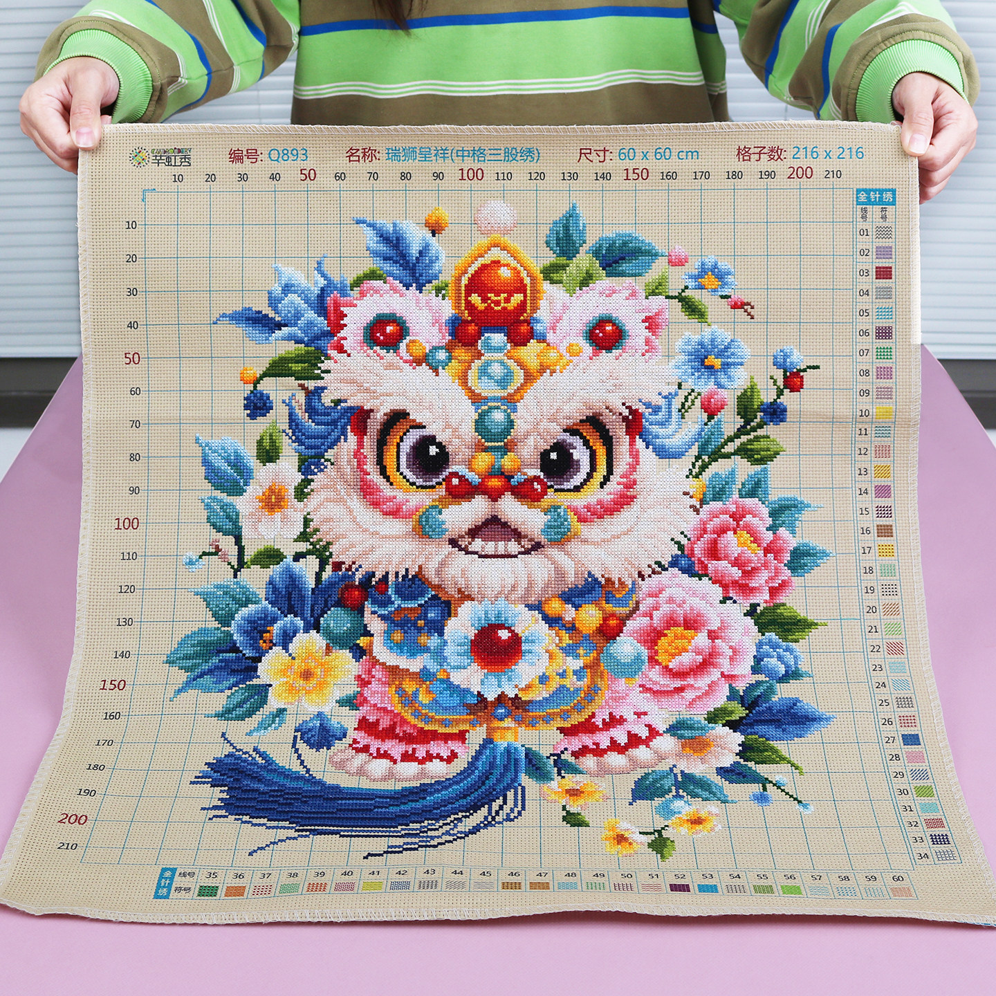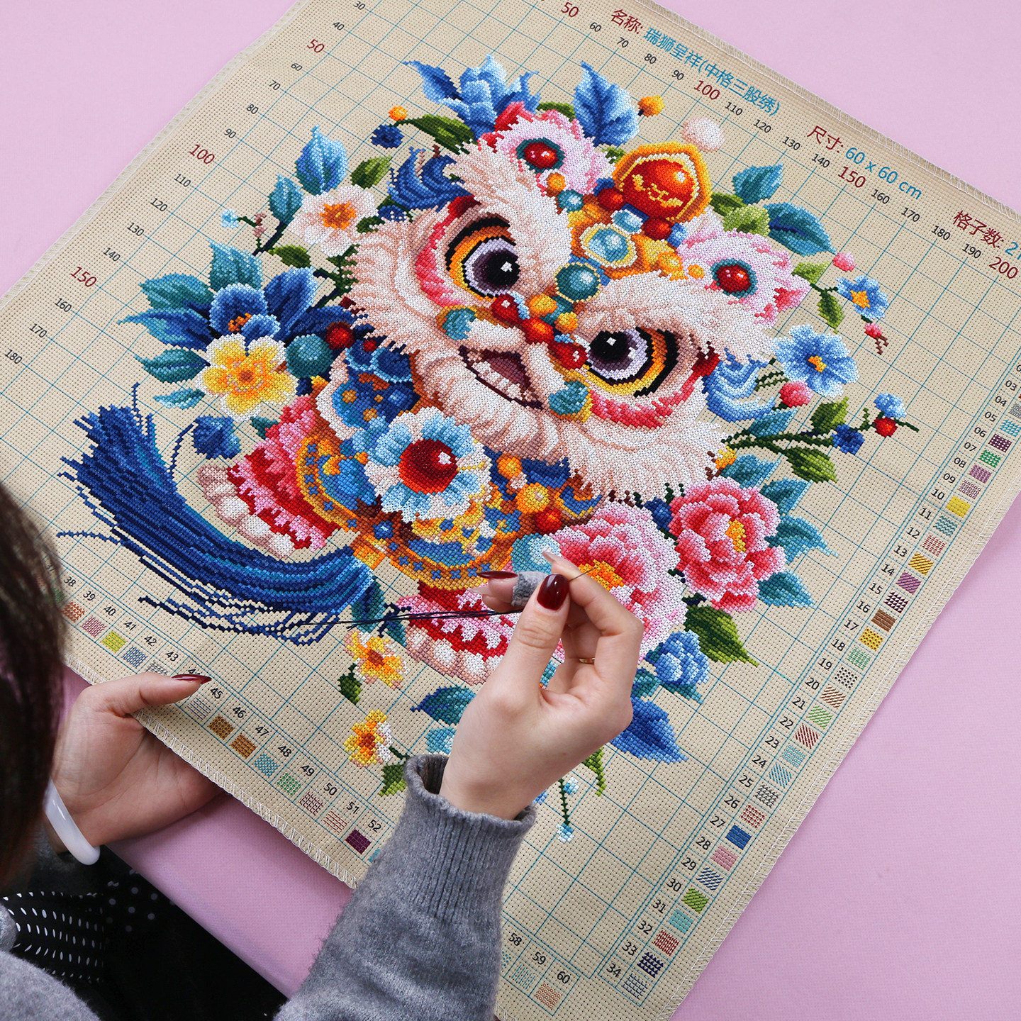 📚 瑞狮呈祥十字绣2026新款高级客厅卧室可爱醒狮国潮刺绣年轻人手工