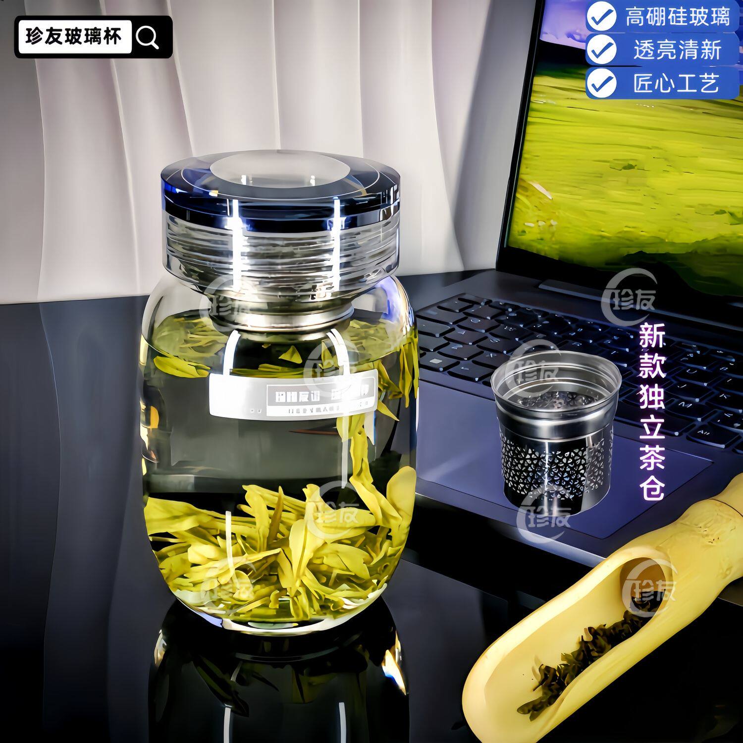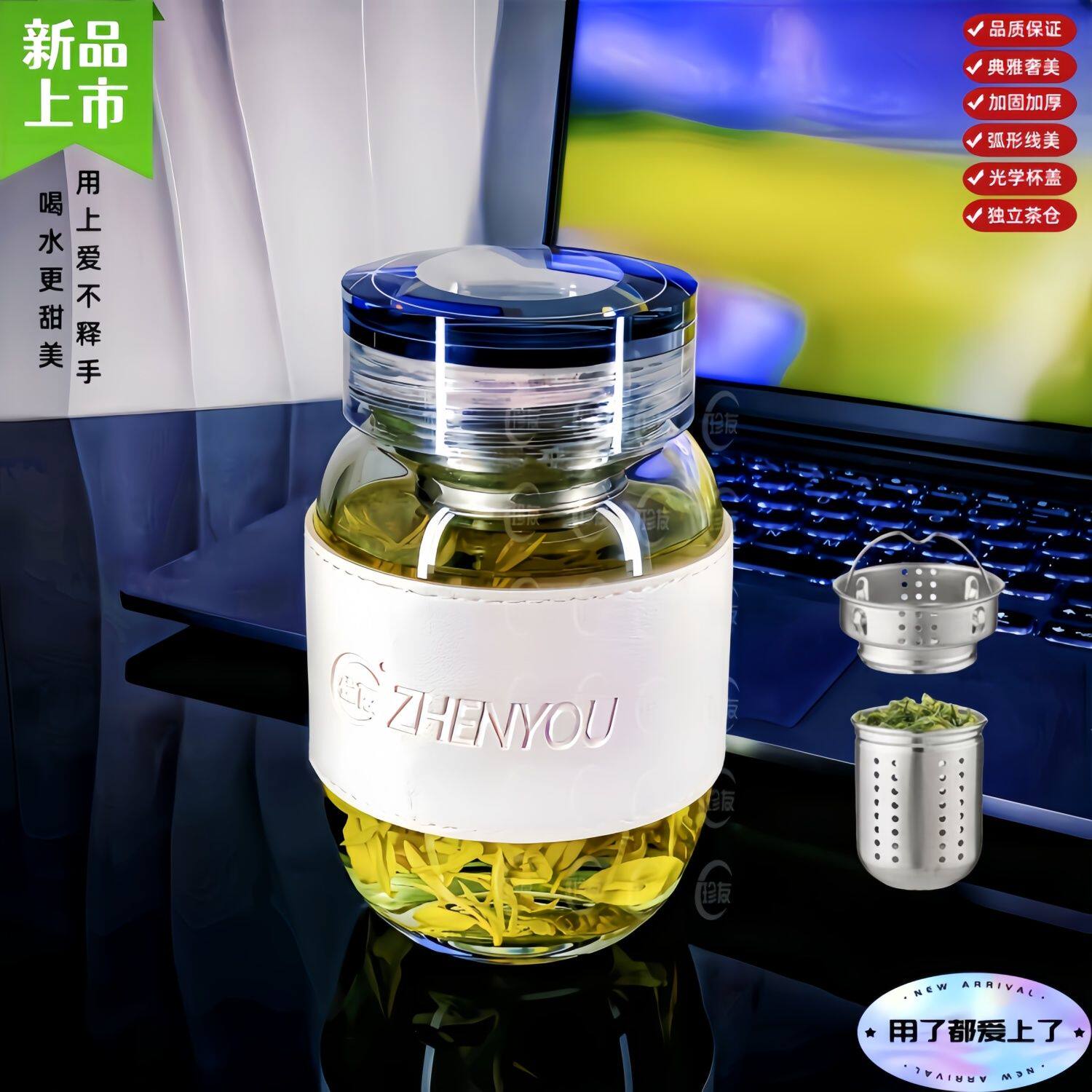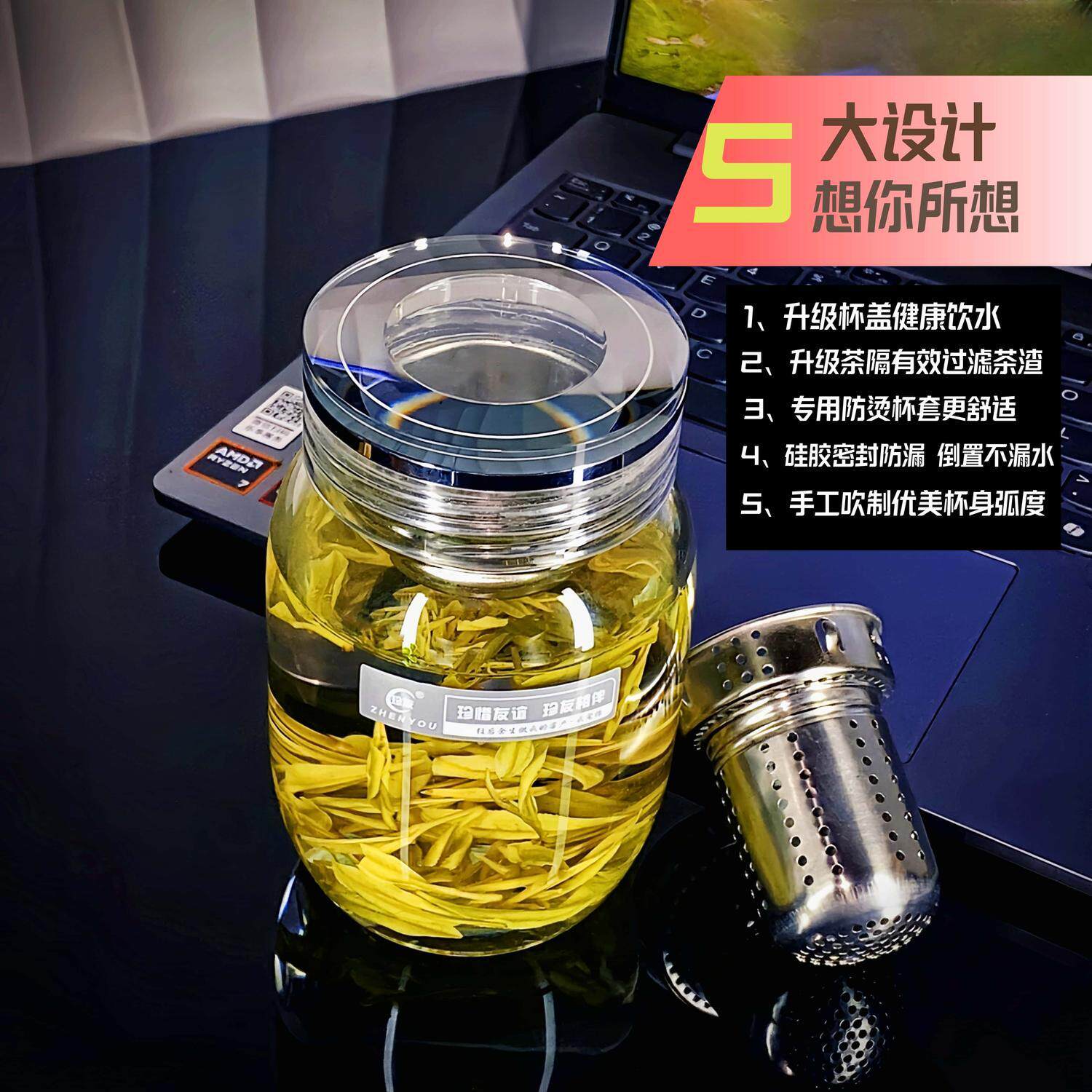 📚 花茶玻璃杯大容量耐高温男女士便携胖胖茶杯防爆户外带盖水杯加厚