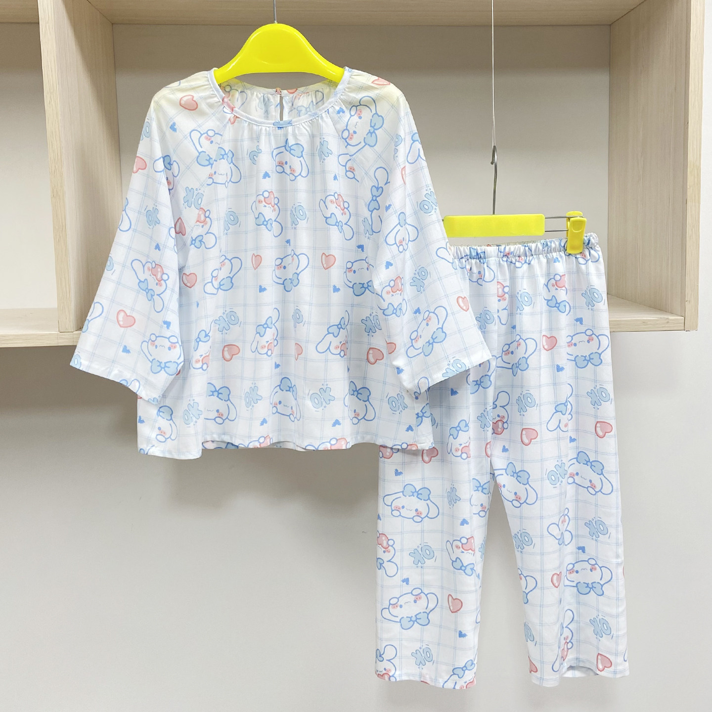 📚 裁缝店选料定做女童套装女孩棉绸可爱长袖童装睡衣空调服家居服夏
