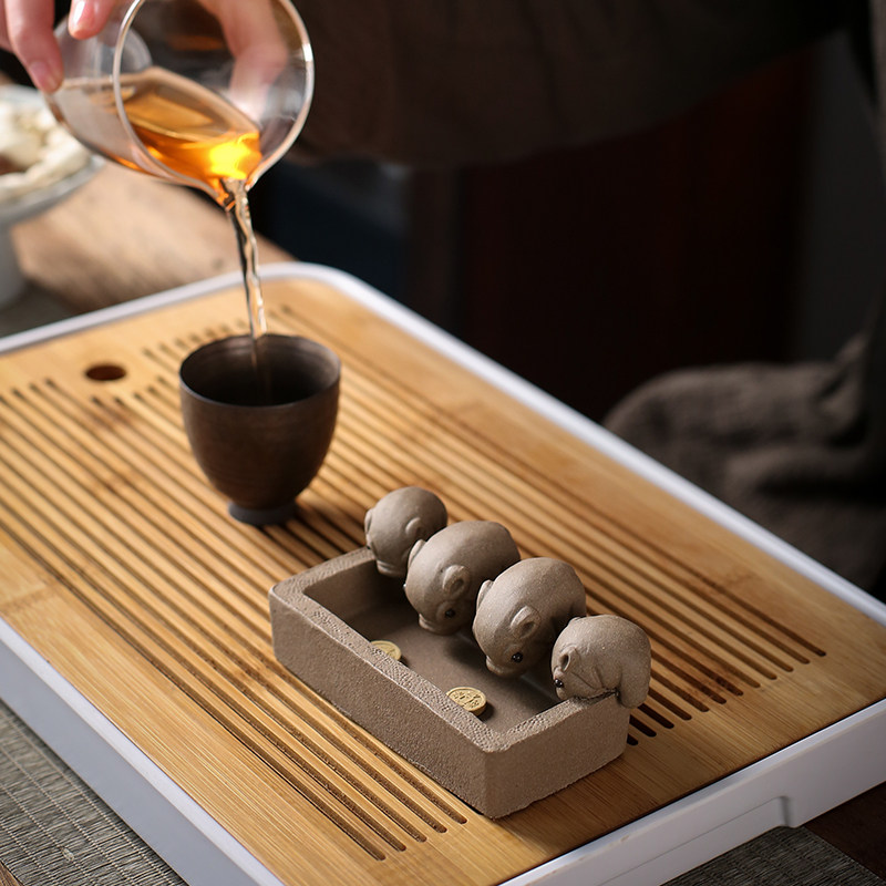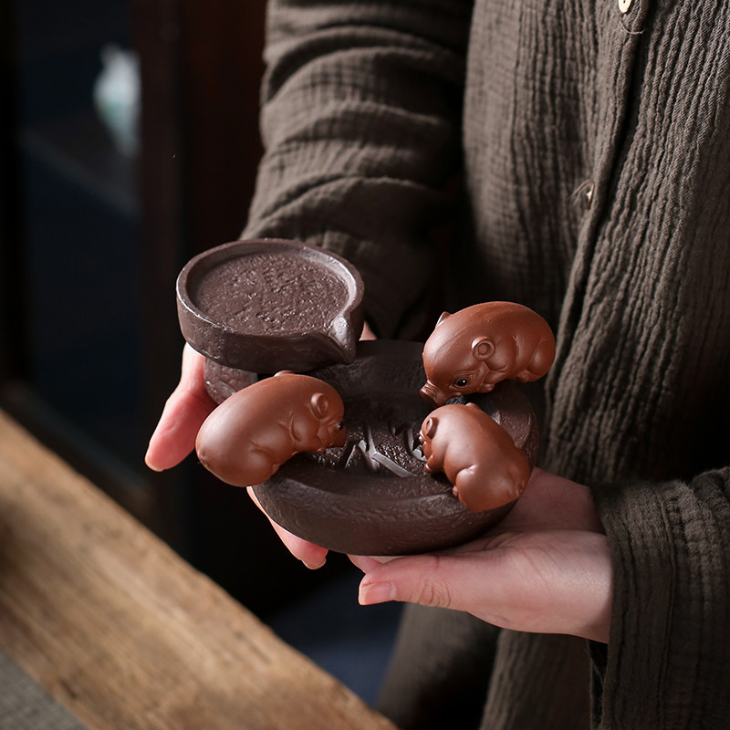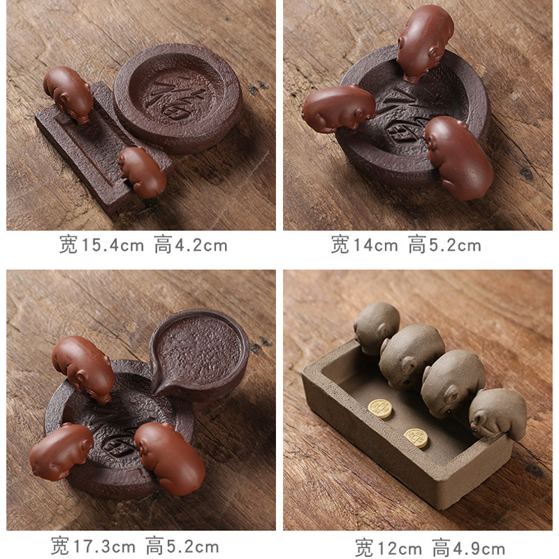📚 宇轩紫砂茶宠摆小猪喝水手工可爱迷你招财件茶桌茶玩手工精品可养