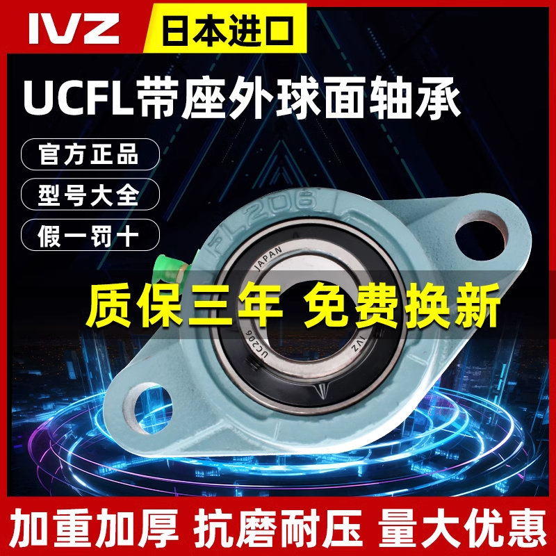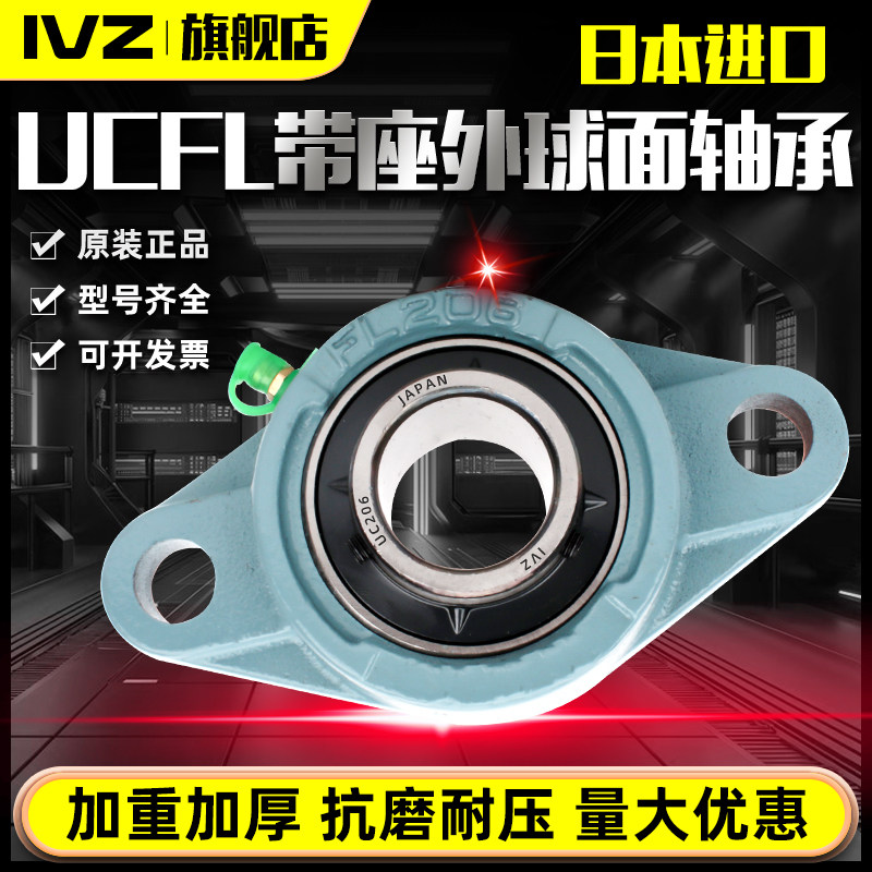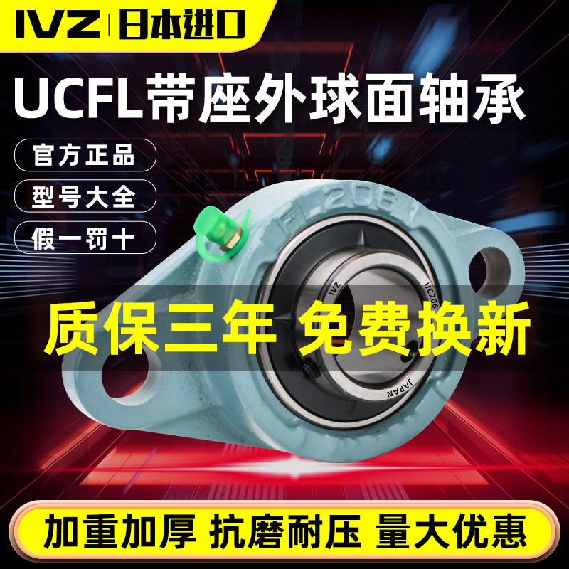 📚 日本进口IVZ外球面轴承带锁套UKFL204 205 206 207 FL208 209 210