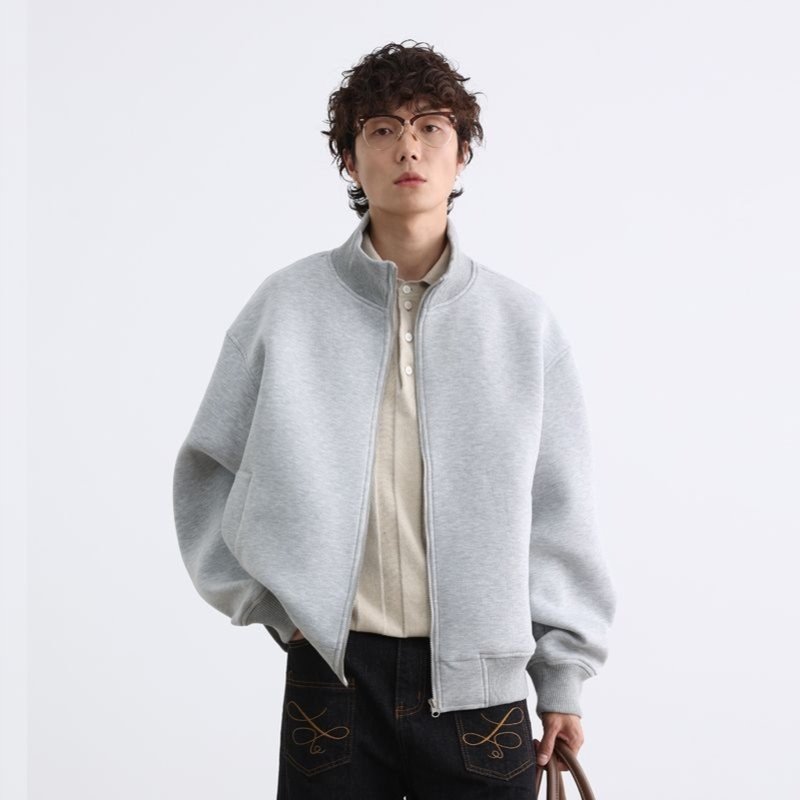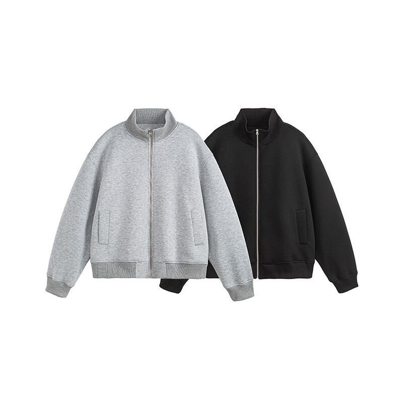 📚 ZZYT美式复古潮牌立领开衫夹克男女简约纯色运动短款外套