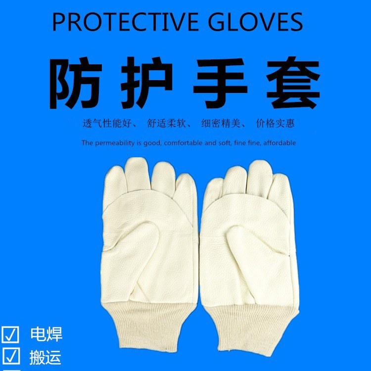 📚 电焊手套牛皮隔热舒适透气耐高温烧焊批发耐磨海员手套防滑浅色