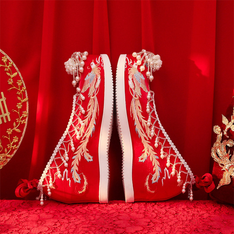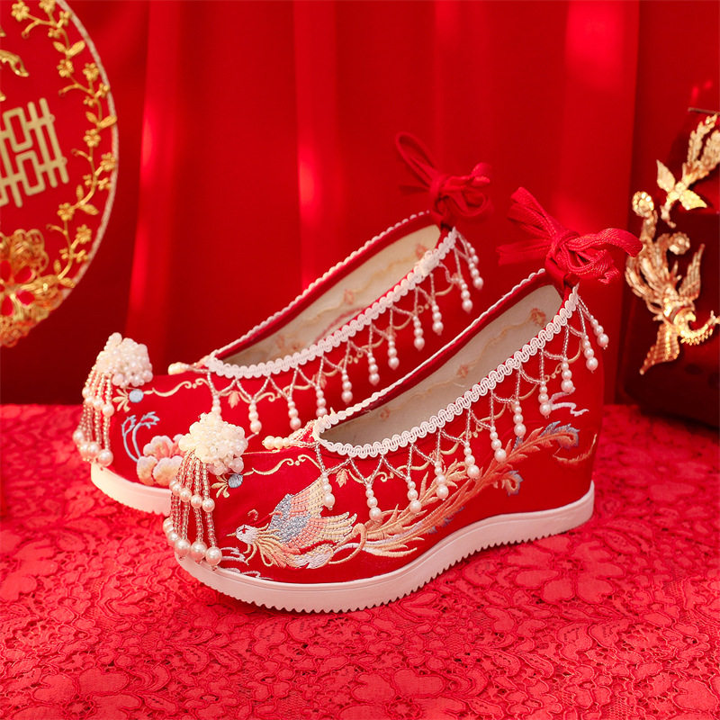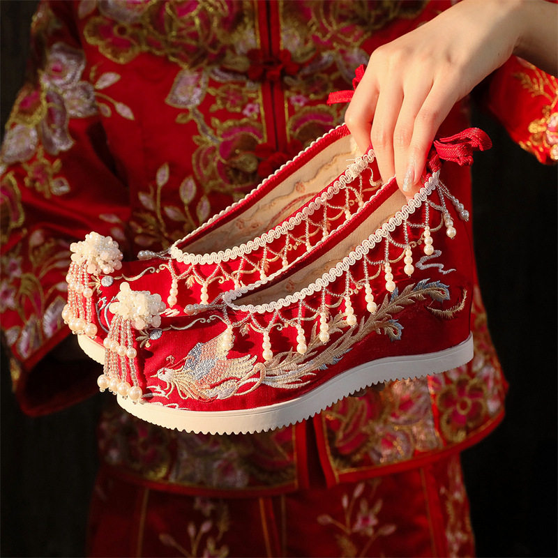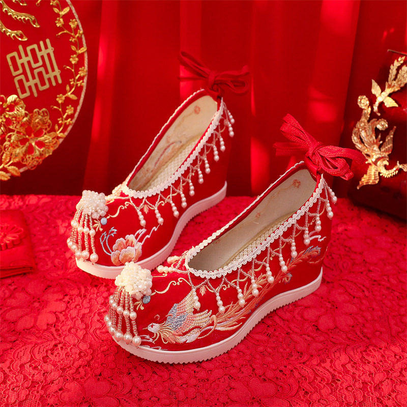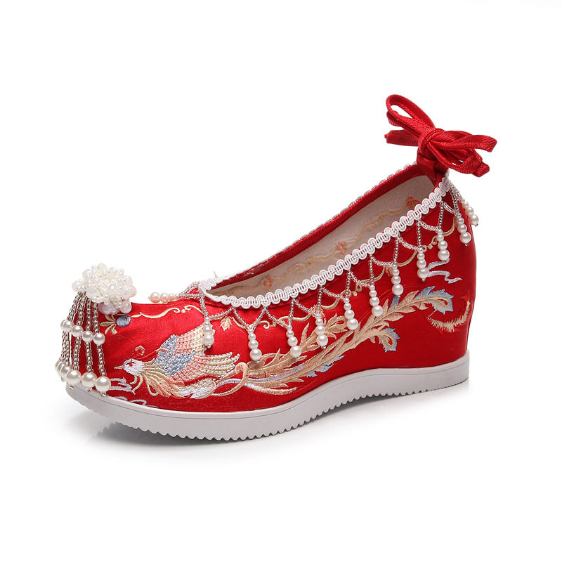 📚 新款汉服鞋子女古装内增高绣花鞋古风翘头婚鞋民族风复古秀禾