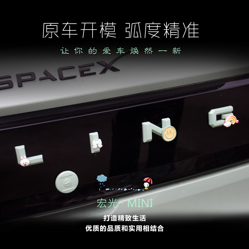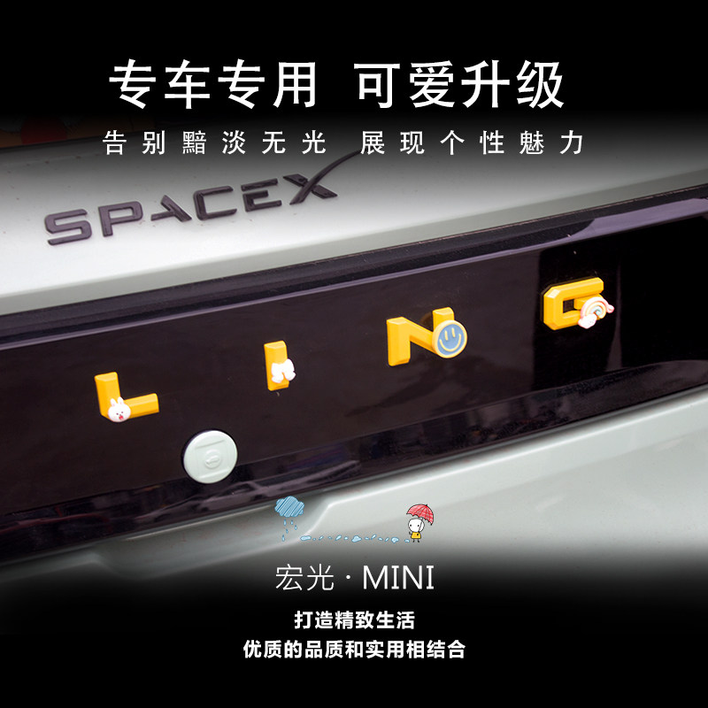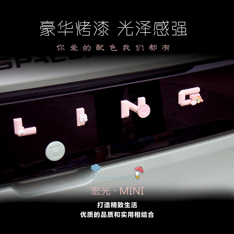 📚 适用于五菱宏光mini马卡龙改装后备箱字母后字牌排量贴后尾牌装饰