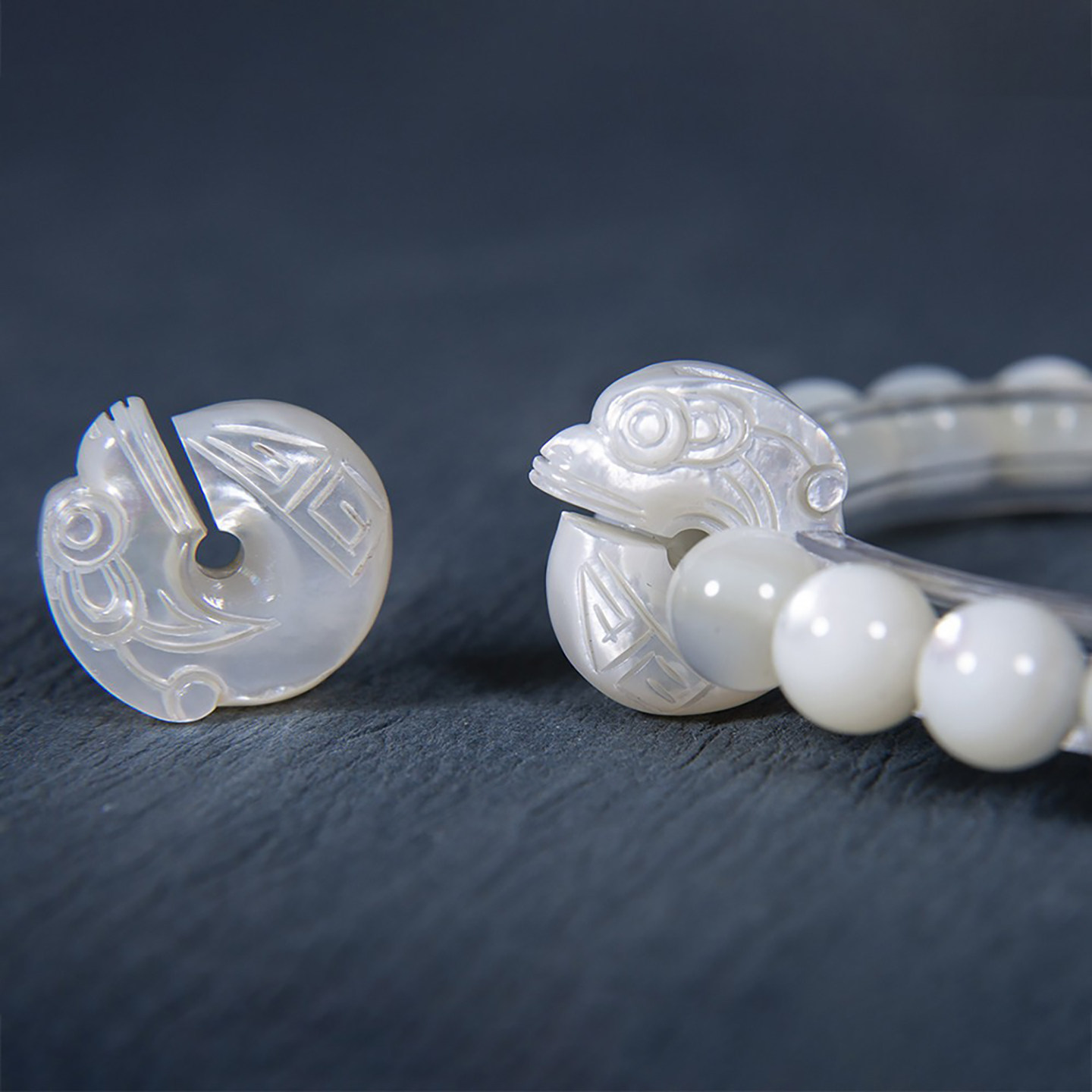 📚 螺钿鱼骨珍珠母贝雕猪龙卡子螭龙圈吊坠佛珠背云文玩朝珠精品配饰