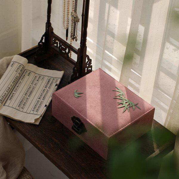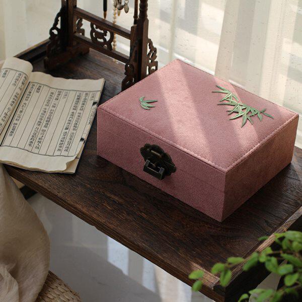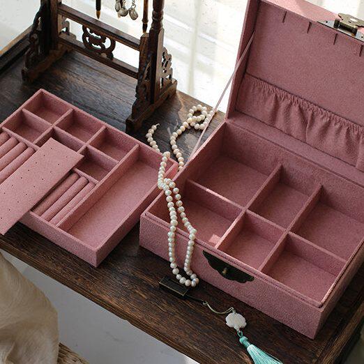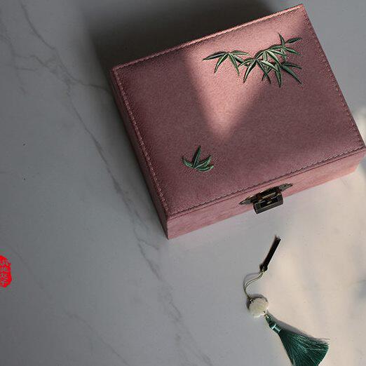 📚 首饰盒中式方绣花来日古锁 刻字奁及笄妆古风礼物收纳盒双层 长