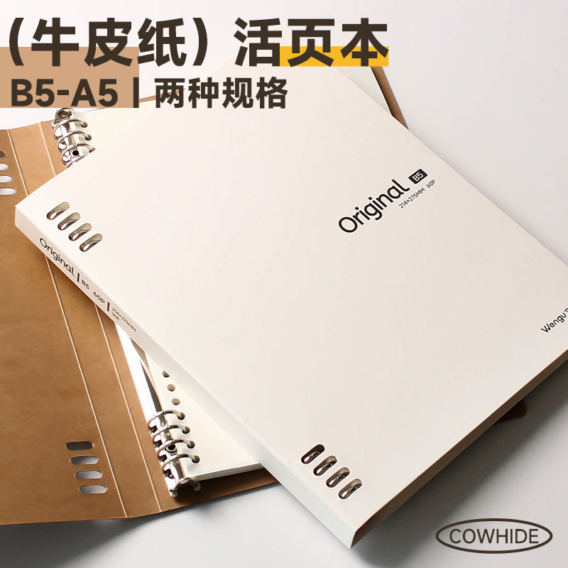 📚 牛皮纸板笔记本不硌手活页本学生简约加厚b5横线a5可拆卸记事本子