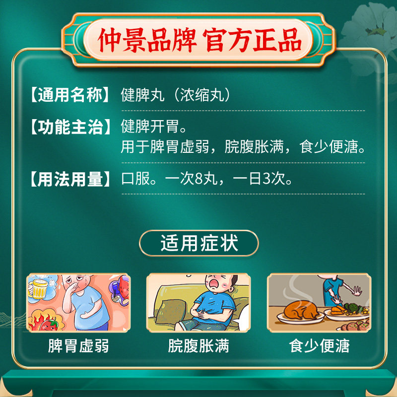 📚 仲景健脾丸(浓缩丸)300丸*1瓶/盒腹胀腹满脾虚祛湿开胃和胃养颜